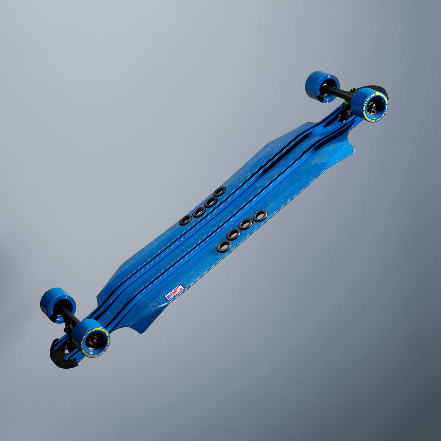 The Oat Soda DTP board is great for freeriding and cruising. This 42" model offers insane flex and a great feel under your feet as you push into a slide. The Oat Soda comes standard with nose guard protection and finger holes in each side of the deck, which allow you a unique way to haul your board around. These can also be used to loop a bike lock through and secure your board while you grab a bite to eat. This particular model offers Touch of Modern-exclusive grip tape, as well as a deck that's done up with a drop-down design, access for drop-through, top-mounted trucks, and extra-flared corners on top of the slight gas pedals.