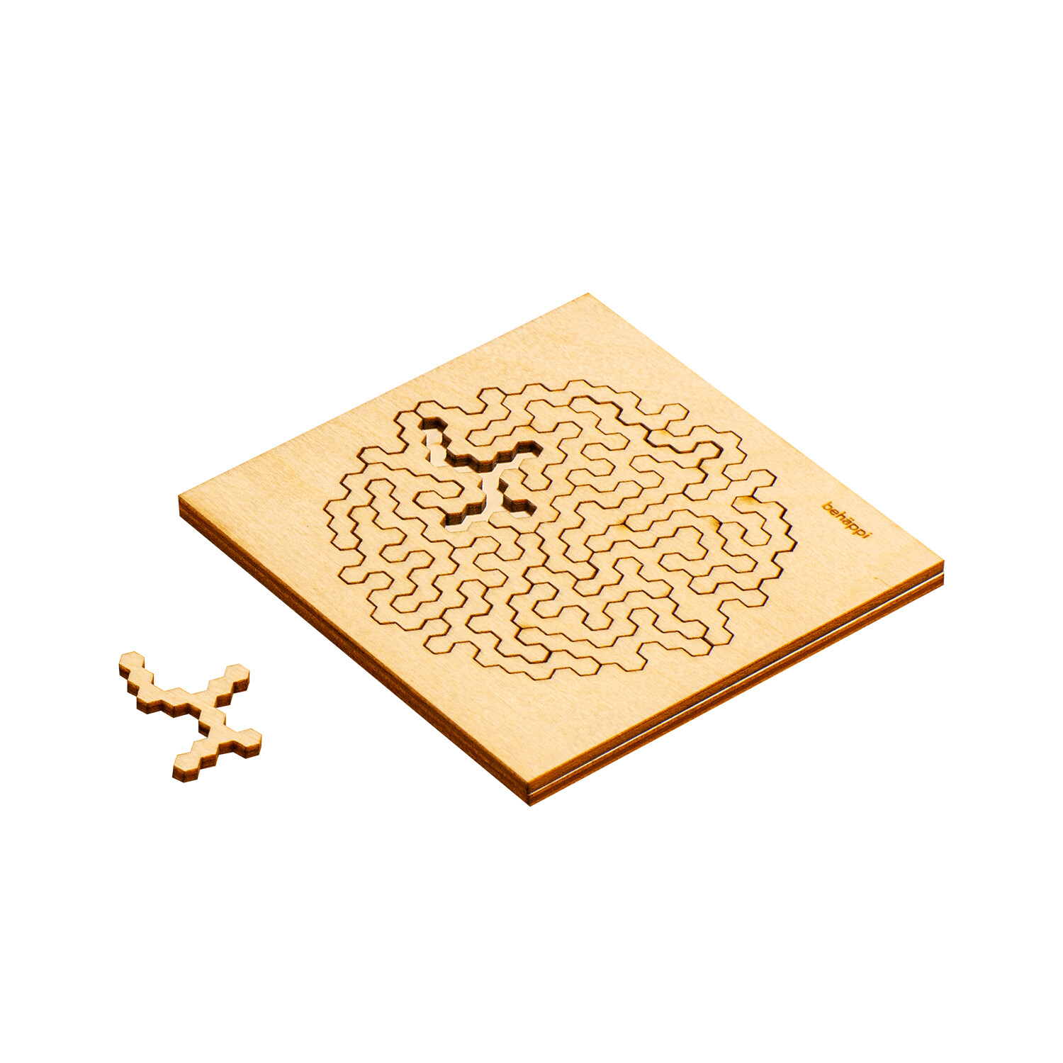 If you're looking for something exciting and challenging to help occupy your time on a plane, train, bus, or in the car, then this puzzle is for you. Behäppi wooden Trävel puzzles are the ultimate riddle for those who are always trying to stay sharp even on the road. Put your skills to the test any time with this creative blend of geometric shapes and mind bending patterns. Every element has its own place and no gaps between pieces are allowed. As an added challenge, the back of each piece is the same as the front, so you never know which side is correct.