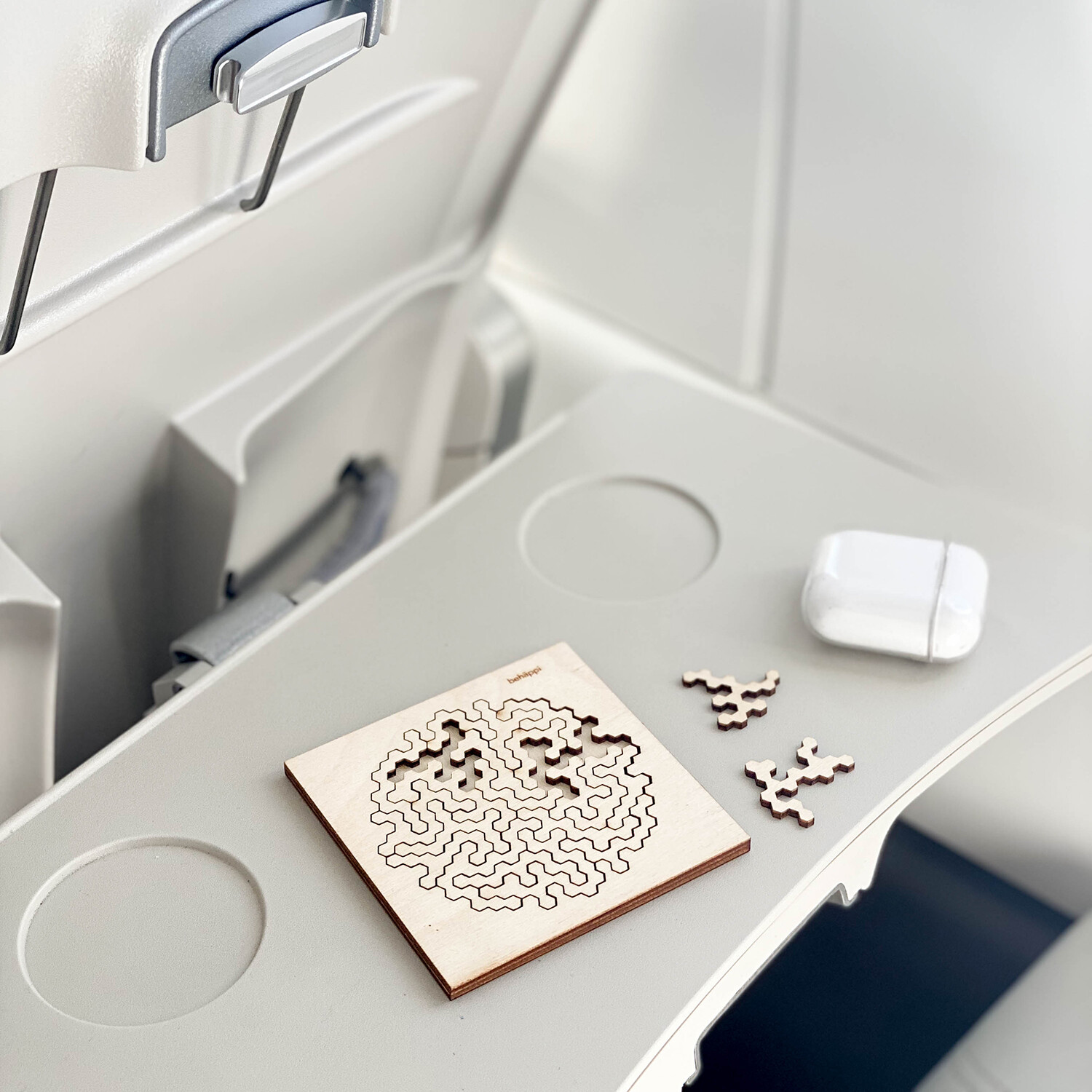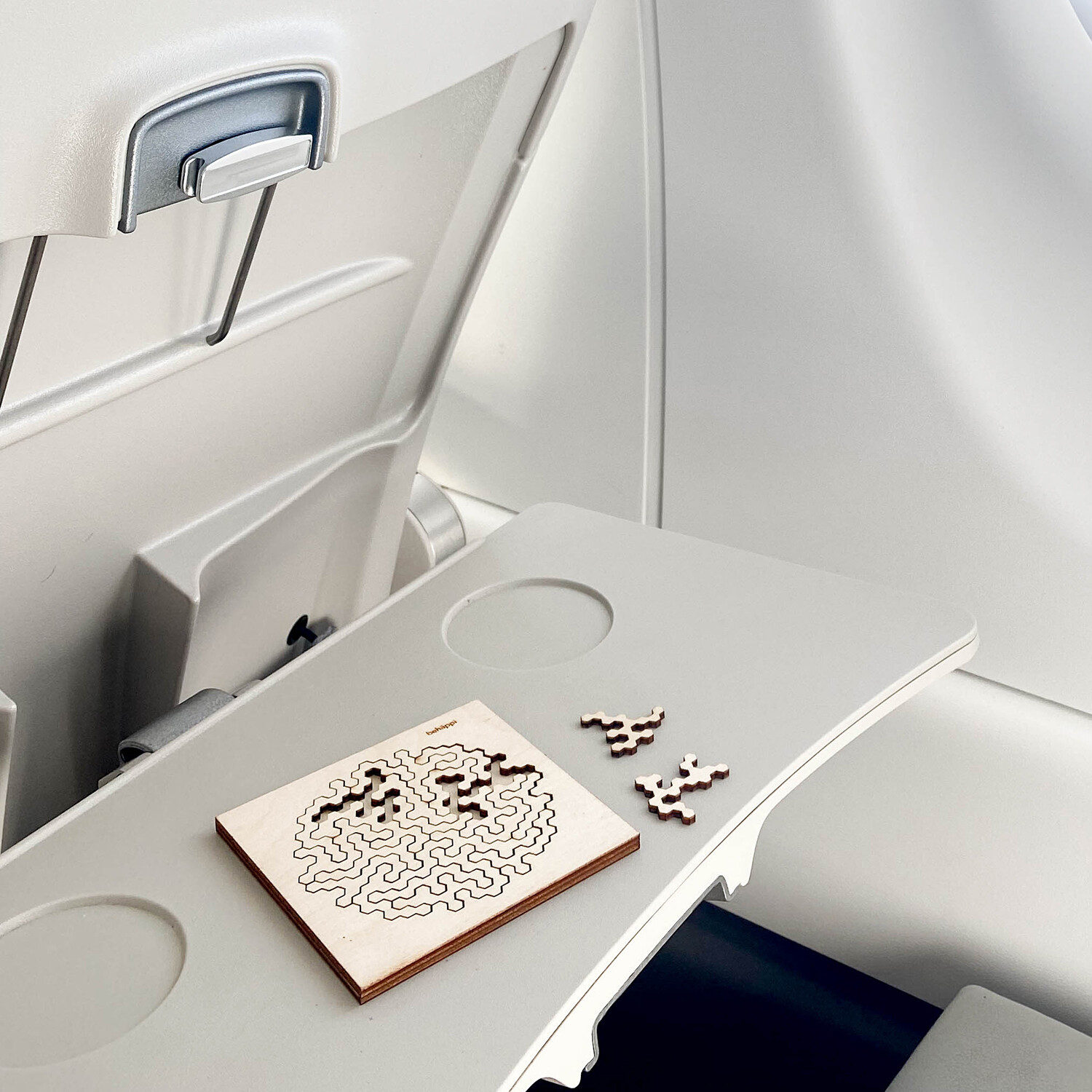 Average Trävel solving time varies depending on the individual, but this puzzle will definitely keep you busy on a short flight. After all – it is sized perfectly for a tray table!