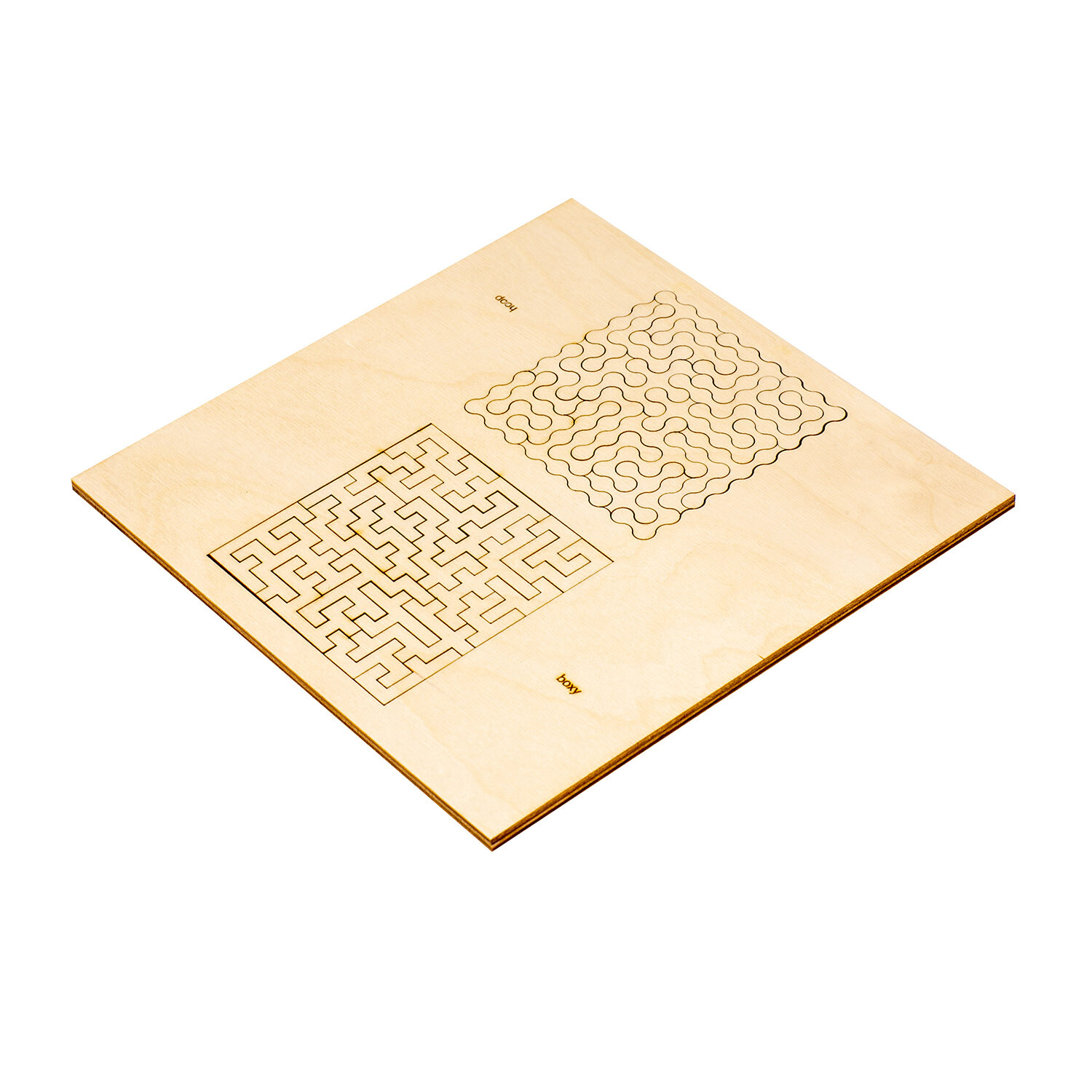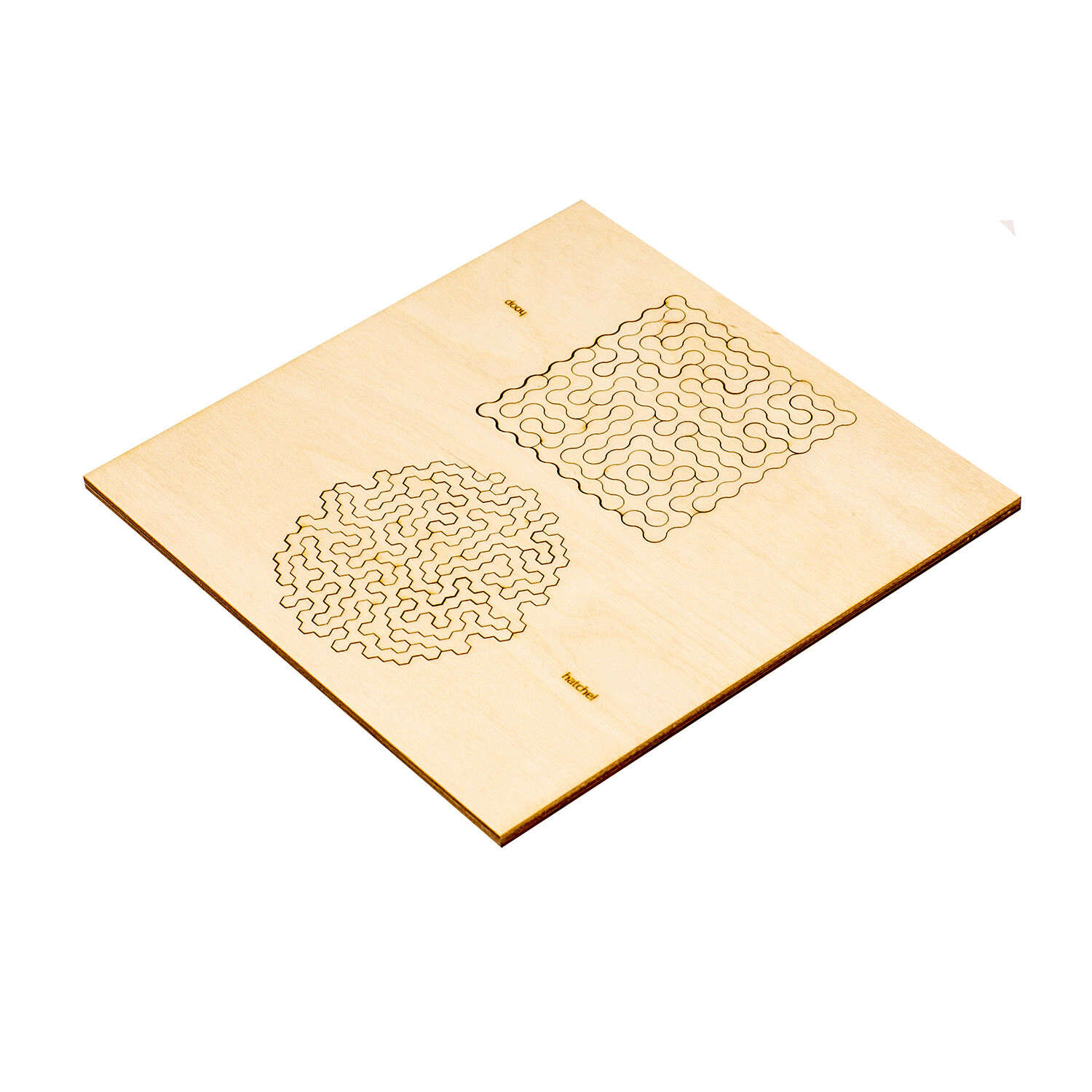 Gane, set, Mätch. Challenge your friends and family to the ultimate test of skill with two puzzles in one. Each Mätch board features two distinct geometric puzzles you can attempt to solve by yourself or set up a tournament to race against an opponent and show off your puzzle-solving prowess. Every element has its own place and no gaps between pieces are allowed. As an added challenge, the back of each piece is the same as the front, so you never know which side is correct. Once completed, you can take it apart and try again or display it as a beautifully minimalist piece of decor in living space.