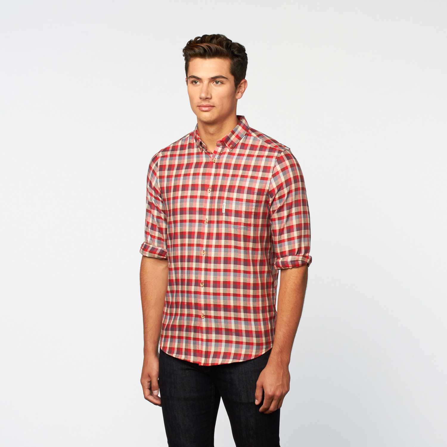 Fleck Check Button-Up // Crimson