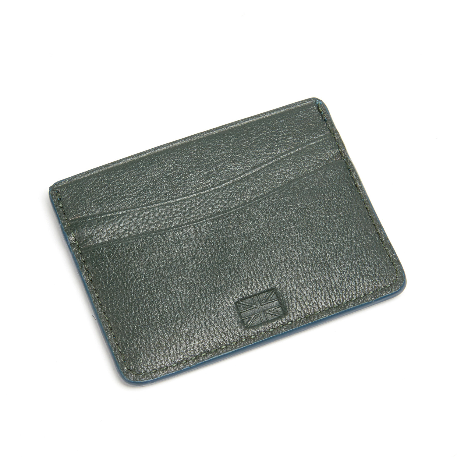 This neat leather card holder boasts a pop of contrast color and gingham embossed details that add a Ben Sherman twist. Also features cotton twill pocket lining, small Union Jack flag stamp on the reverse, and a silver foil embossed branding.