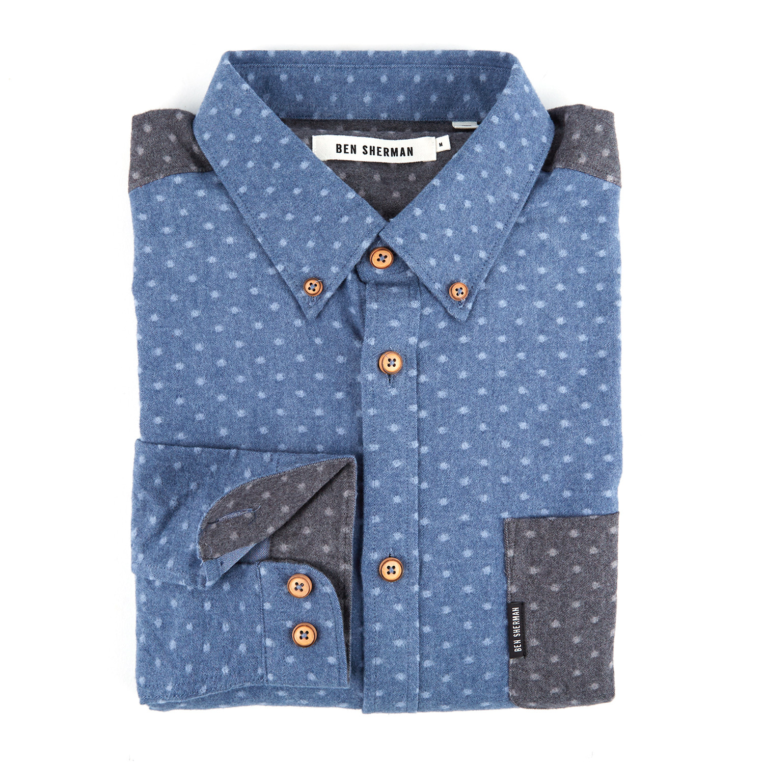 With mod detailing and preppy, tailored edge, the Dot Print Brushed Twill Button-Up is Ben Sherman's way of giving something to wear throughout the week. This eye-catching shirt is made with contrast-cut detailing that subtly draws notice.