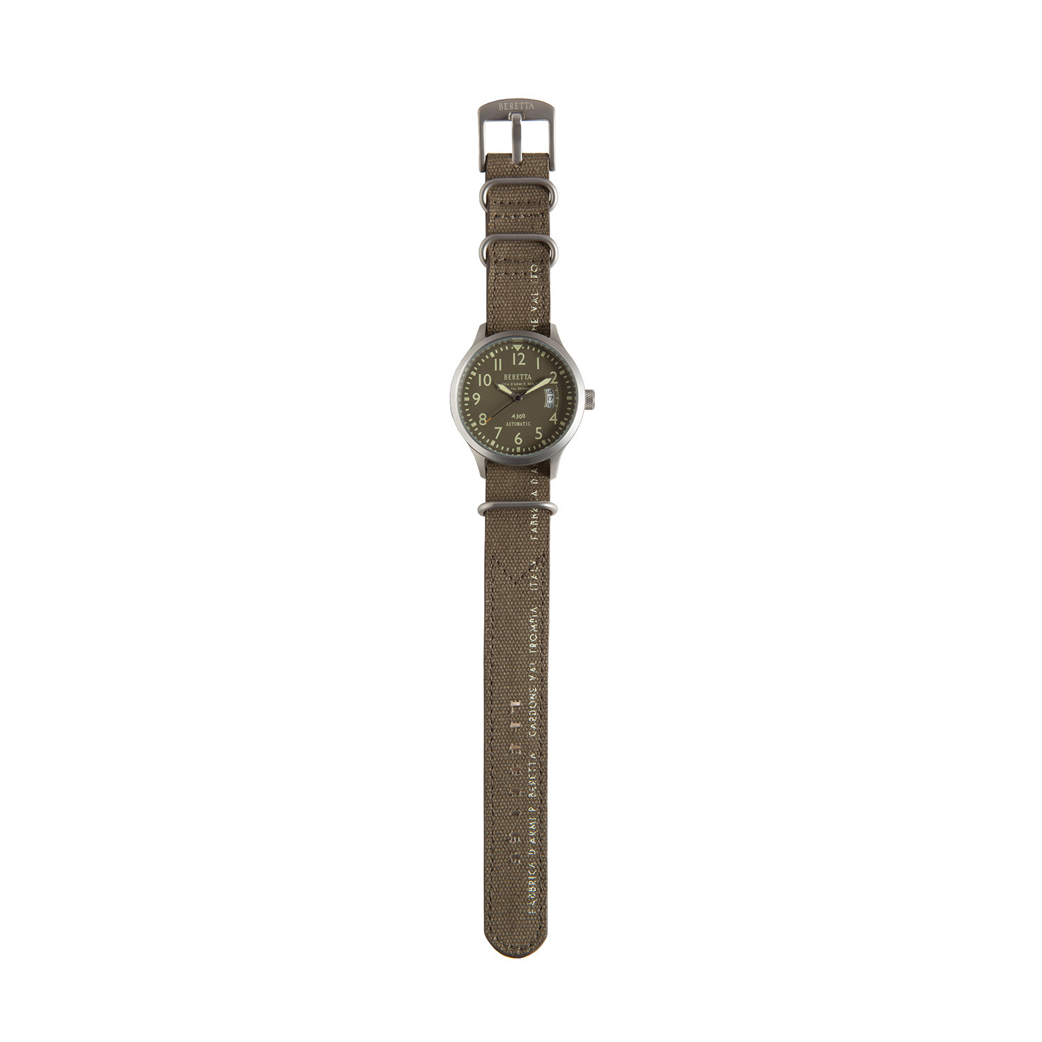This automatic A300 Watch is made by Beretta with an eye on tactical style and a focus on the essential details. With highly resistant mineral glass and a fabric strap that matches the brushed finishing on the stainless steel case, it's a stunner that you'll love looking at on your wrist.