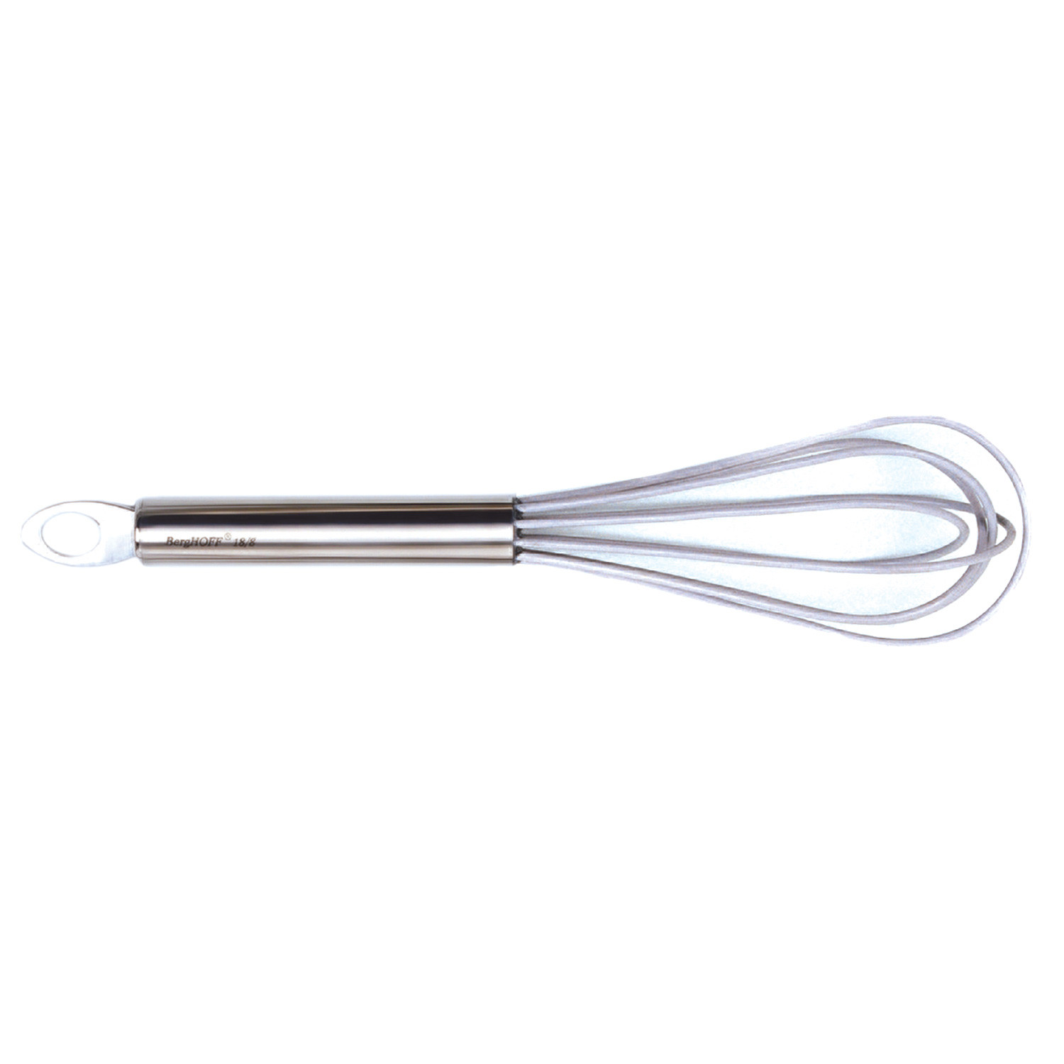 This 9" silicon whisk construction can whisk eggs, whip cream, pancake batter and more. The silicone head gives it the ability to whisk hot and cold ingredients alike.
