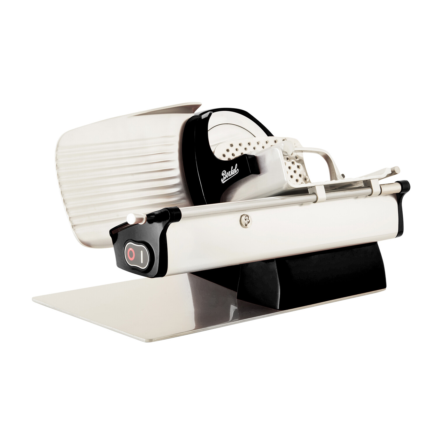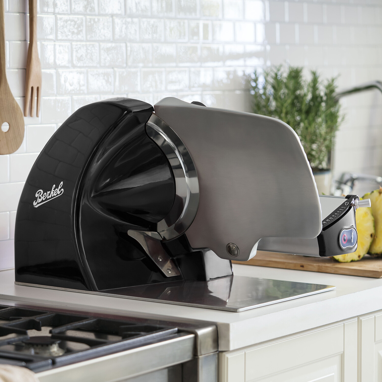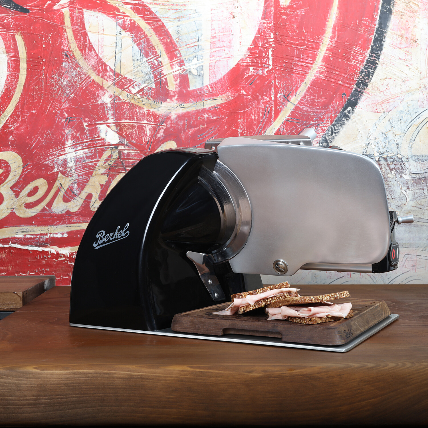 Berkel's Home Line 250 is the culmination of the brand's slicer technology in its artisanal production process. This slicer guarantees unbeatable performance and safety levels: the chrome-plated steel blade with professional profile ensures the perfect cut, uniform slices and reduced waste.
