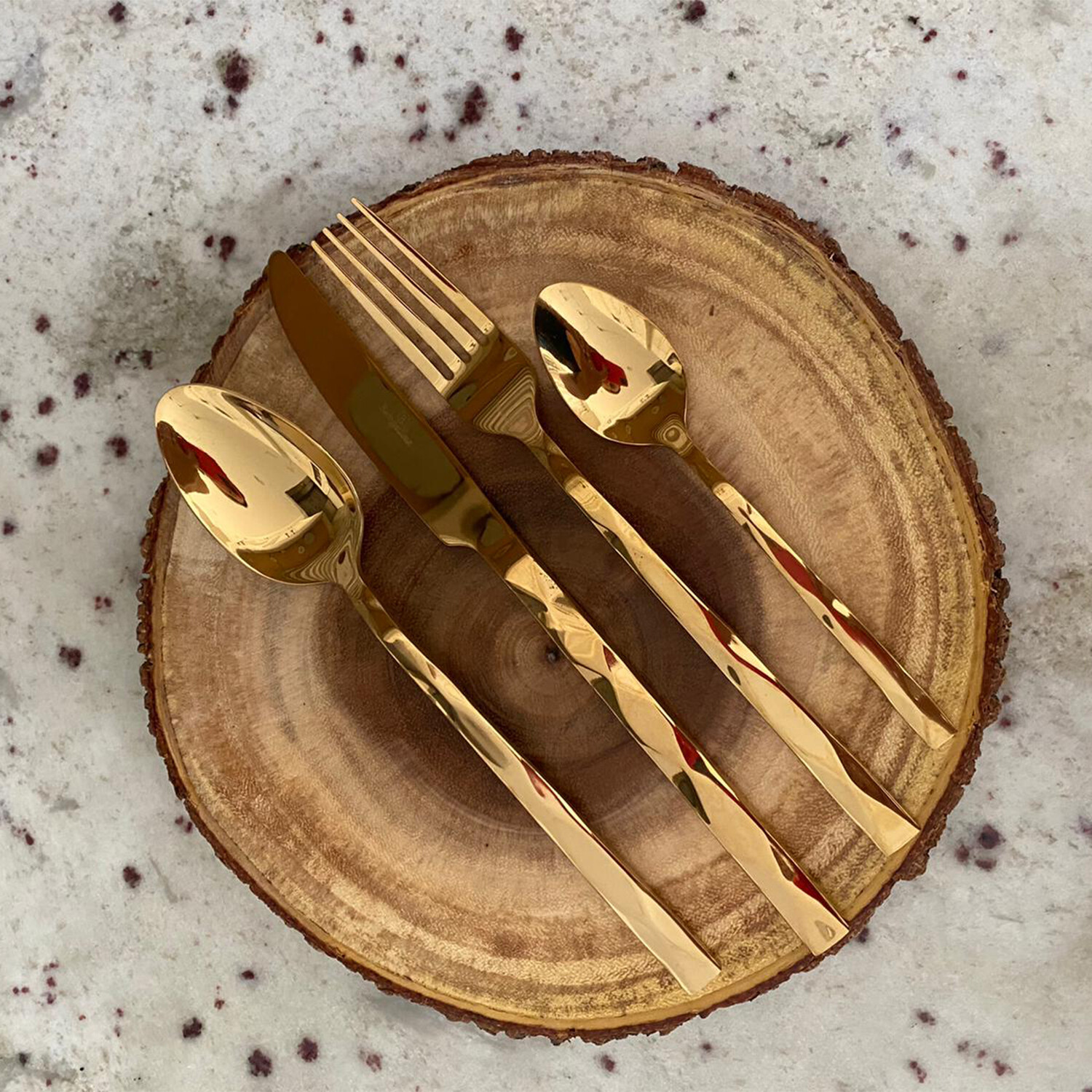 24-Piece Stainless Steel Satin Finish Cutlery Set // Gold