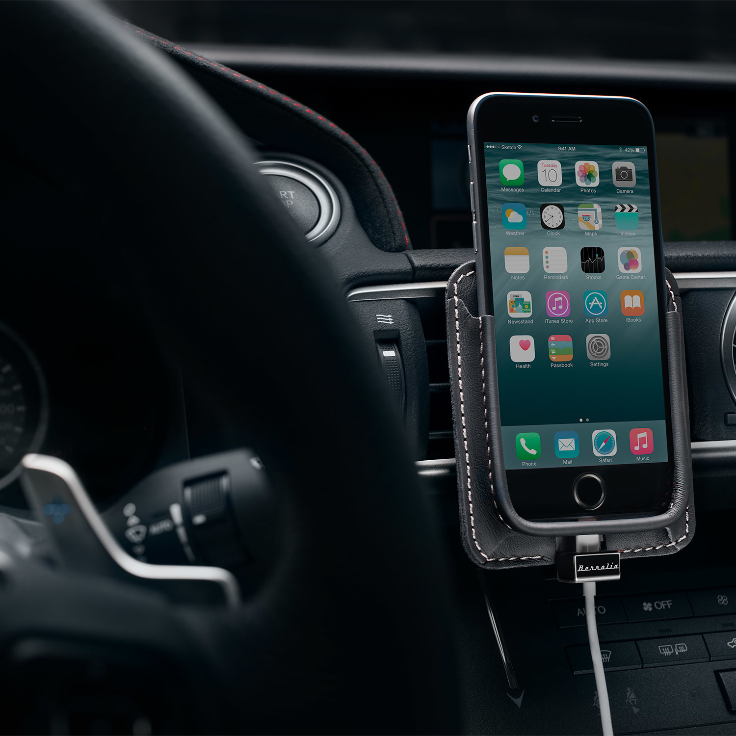 This aesthetically elevated piece is a handcrafted car mount for your iPhone. Made of premium-grade stainless steel and Italian leather, it can be operated with just one hand, and even works without having to remove most phone cases. The clip is specially developed to fit perfectly into dashboard vents with horizontal fins, so that you can have full access to your music, calls, or navigation apps while on the go.