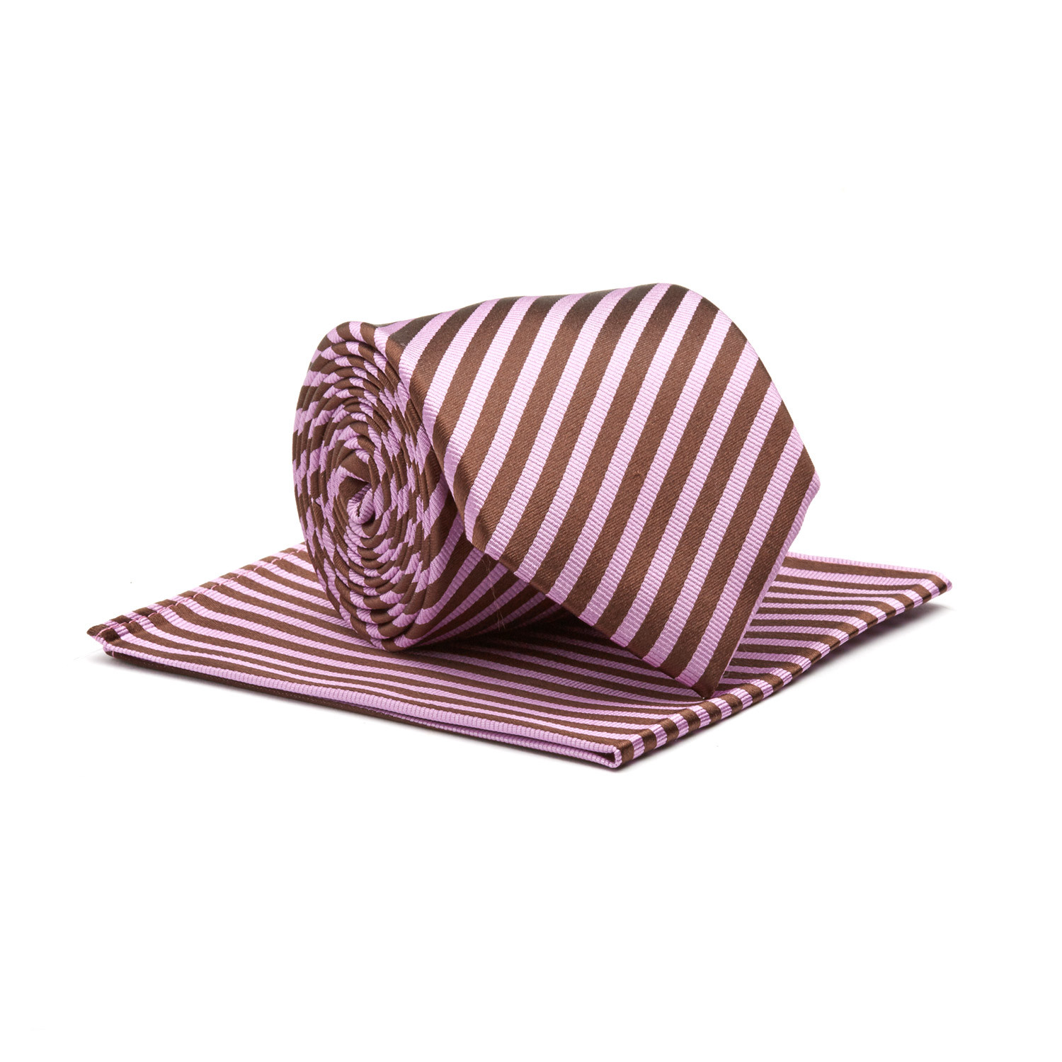 Stripe Silk Tie + Pocket Square // Fuchsia + Brown
