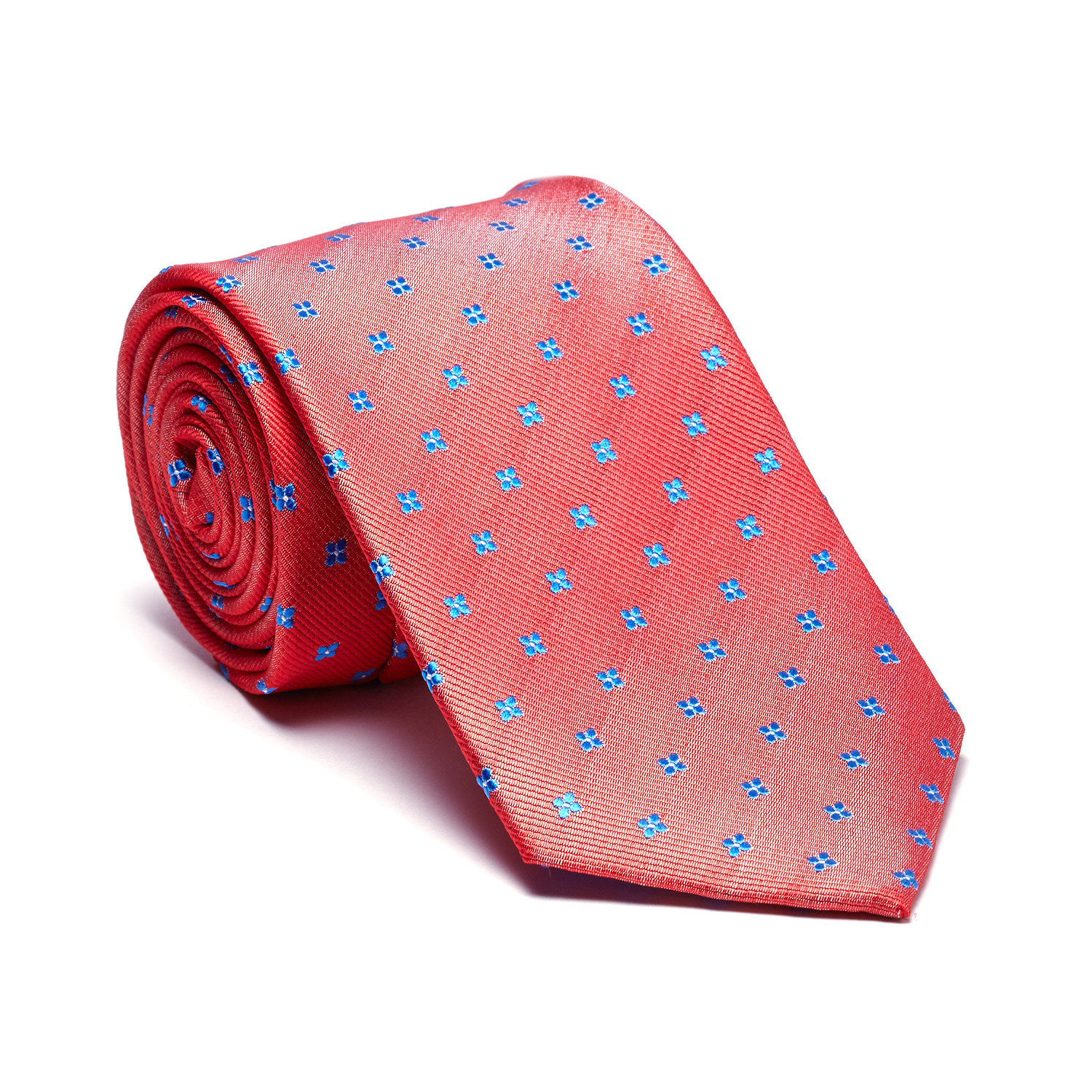 Upgrade your outfit with the Red and Sky Blue Quatrefoil Silk Tie. Made in the finest Italian silk, its modern width pairs perfectly with narrow and wide lapels alike.