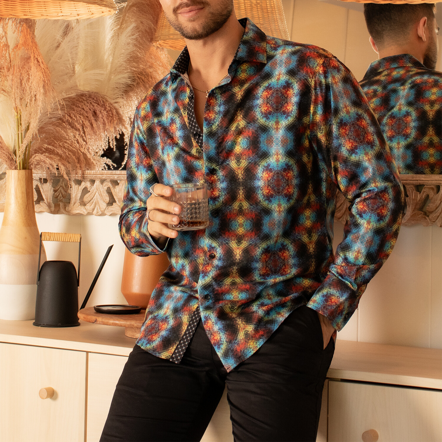 Decades Kaleidoscope Long Sleeve Dress Shirt // Black