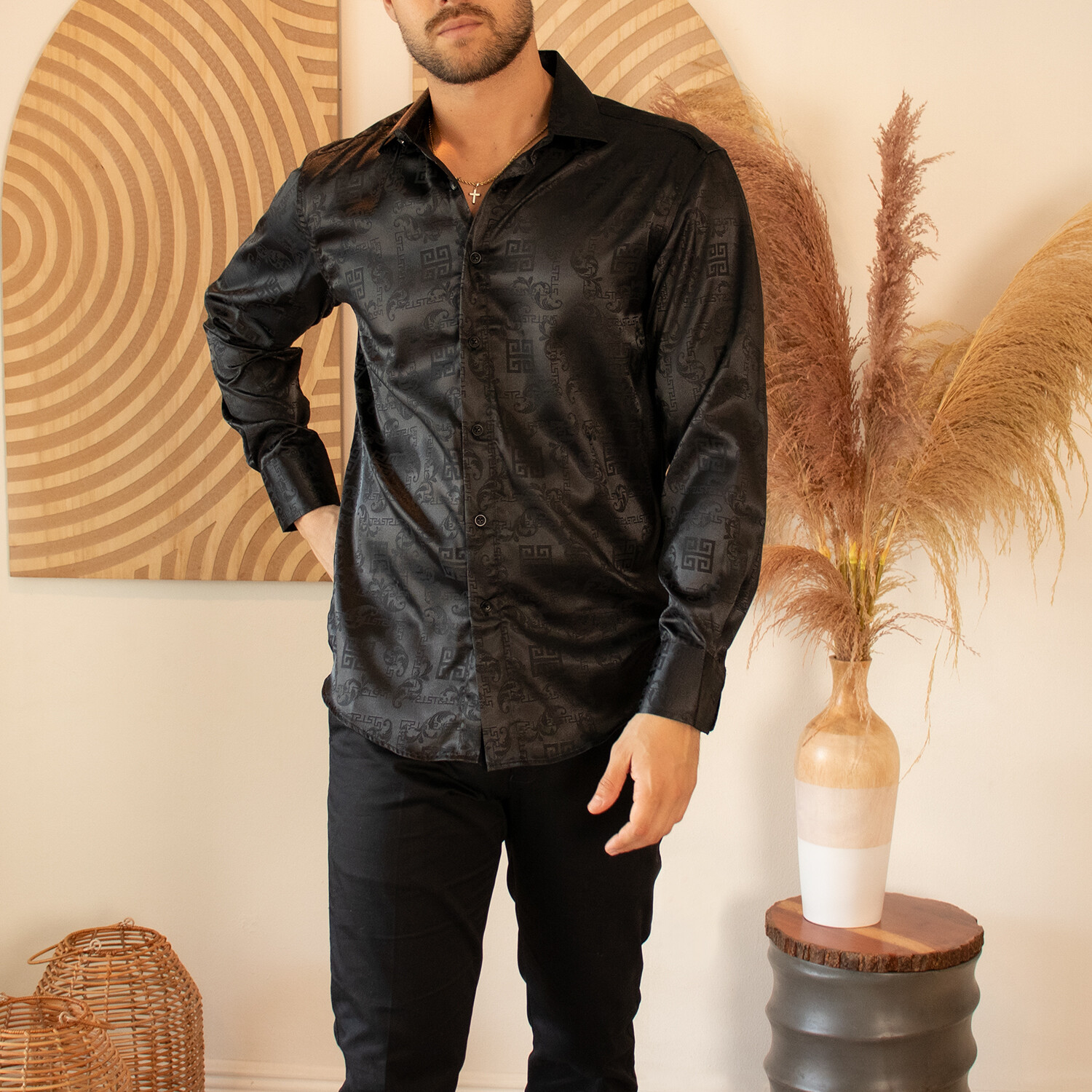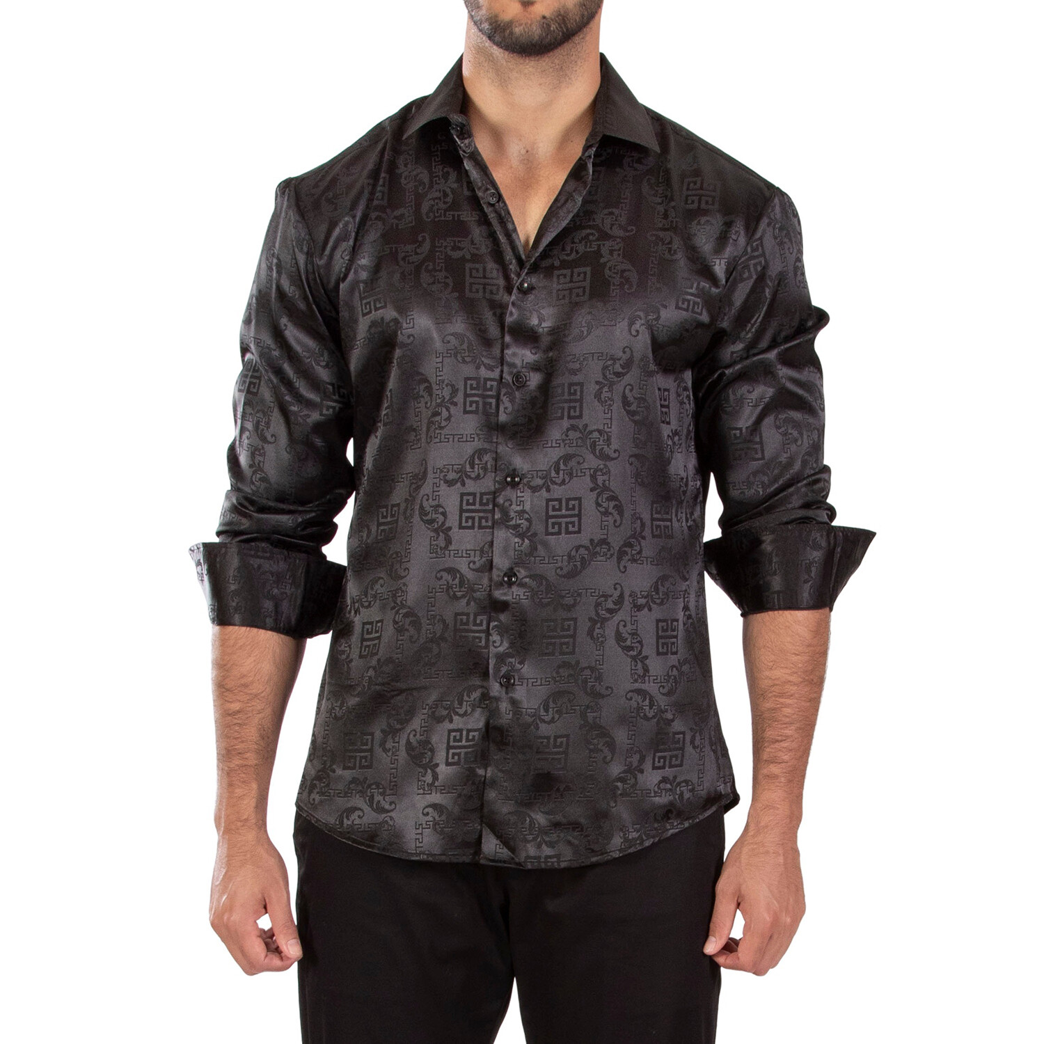 Greek Key Long Sleeve Dress Shirt Black Shine // Black