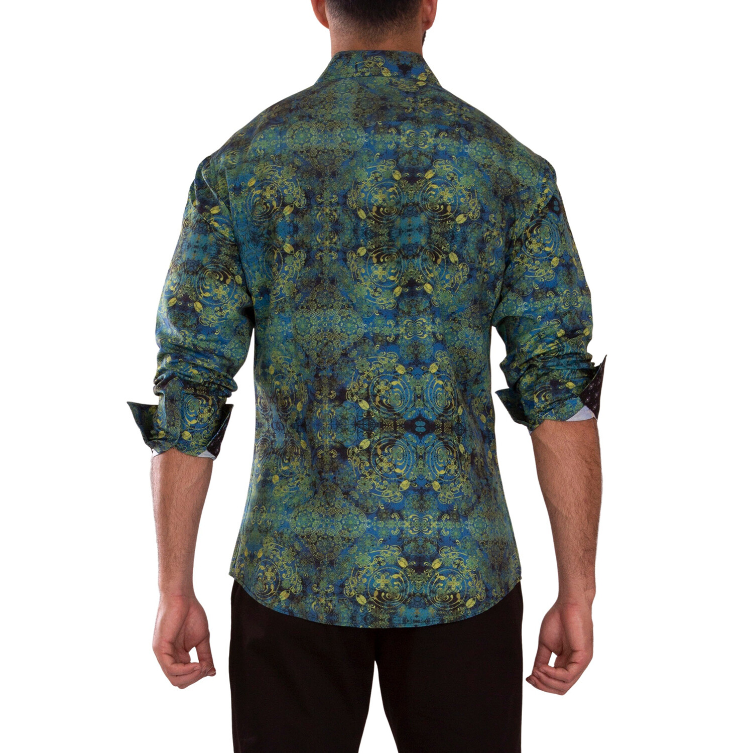 Mandala Effect Print Long Sleeve Dress Shirt // Green