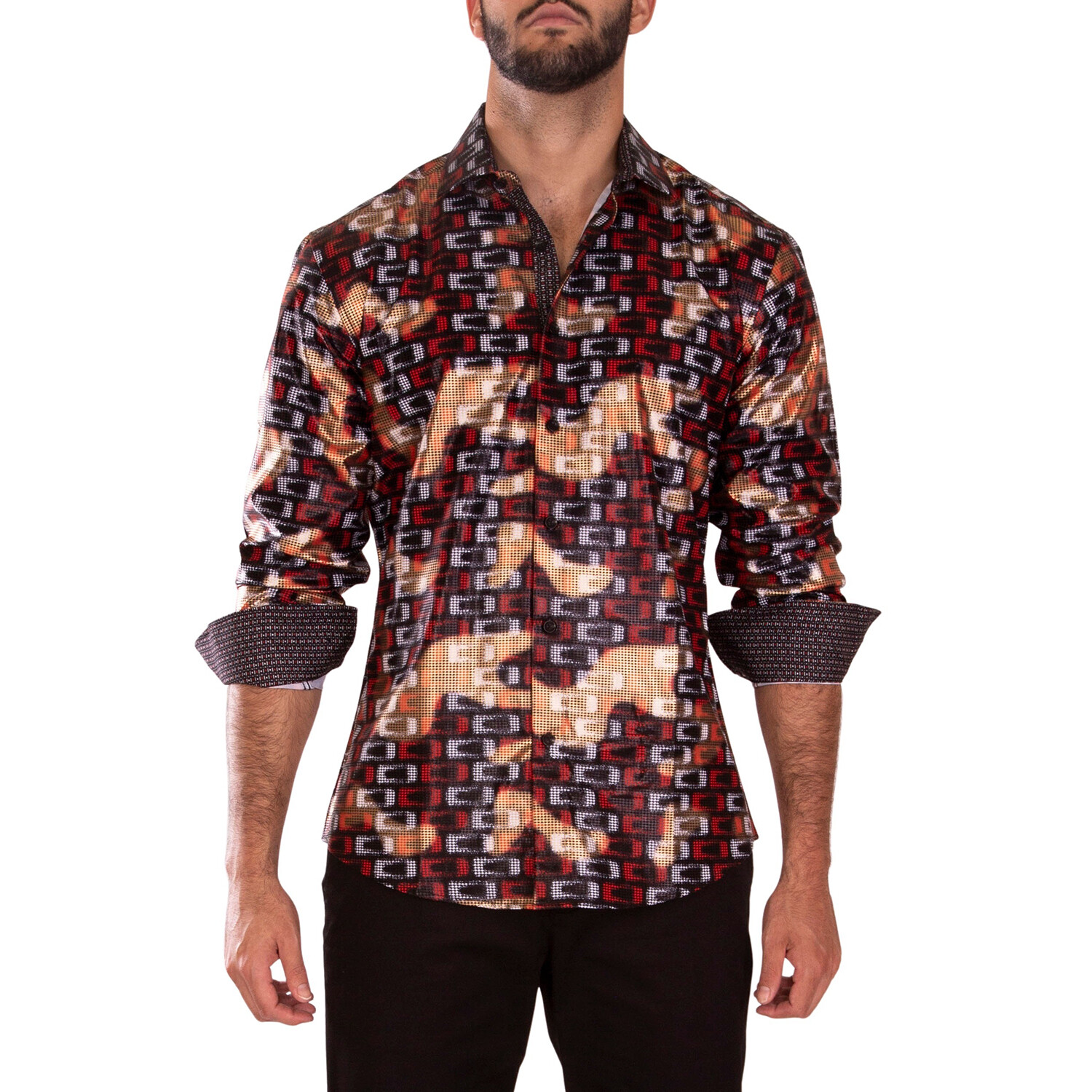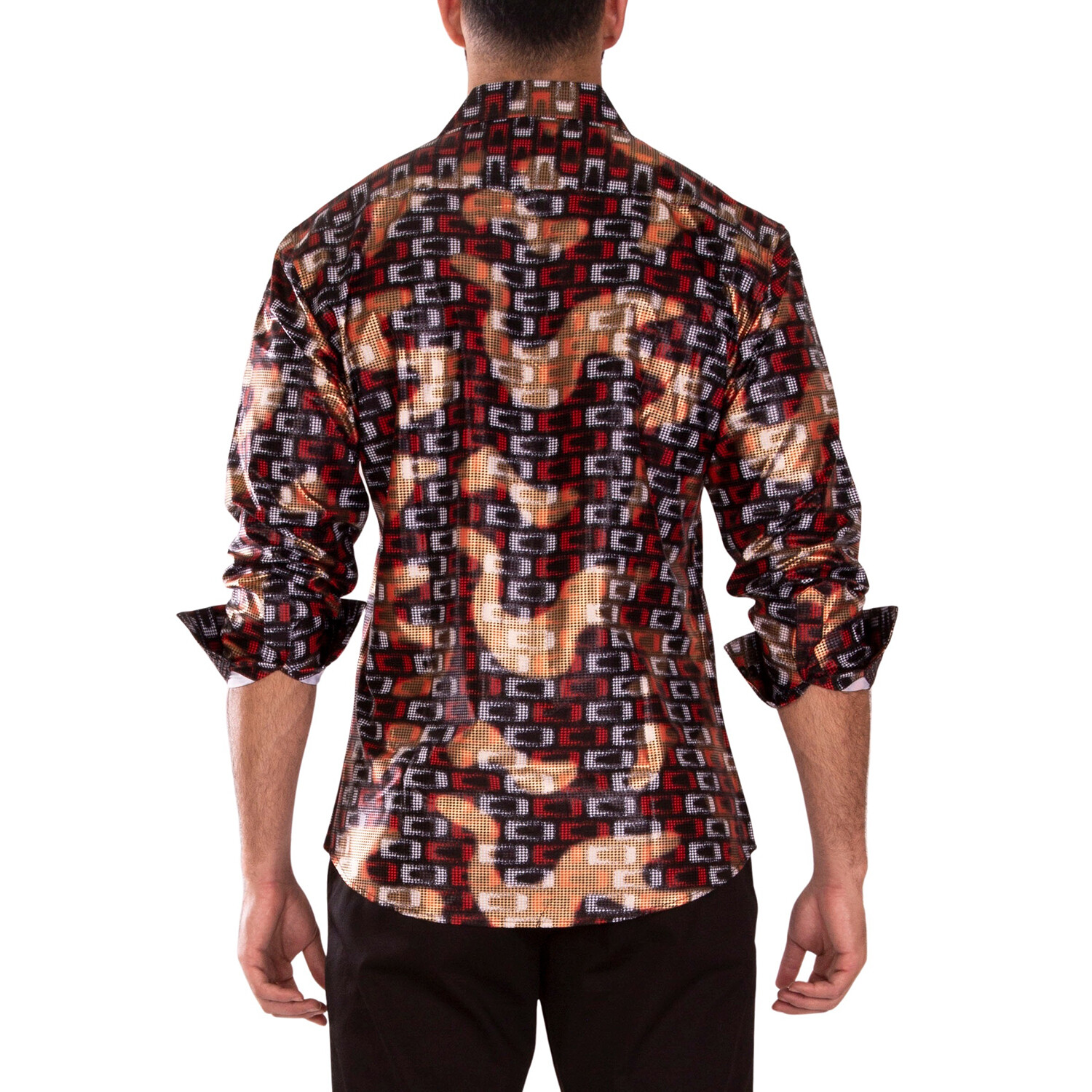 Shiny Geo Print Long Sleeve Dress Shirt // Black + Red