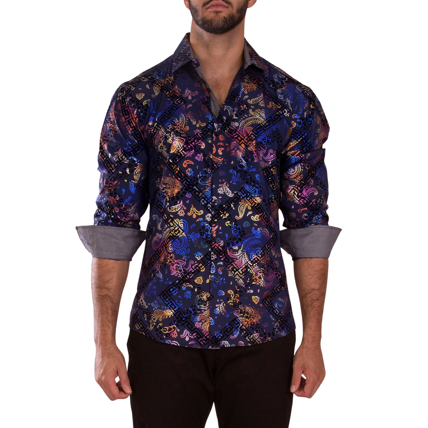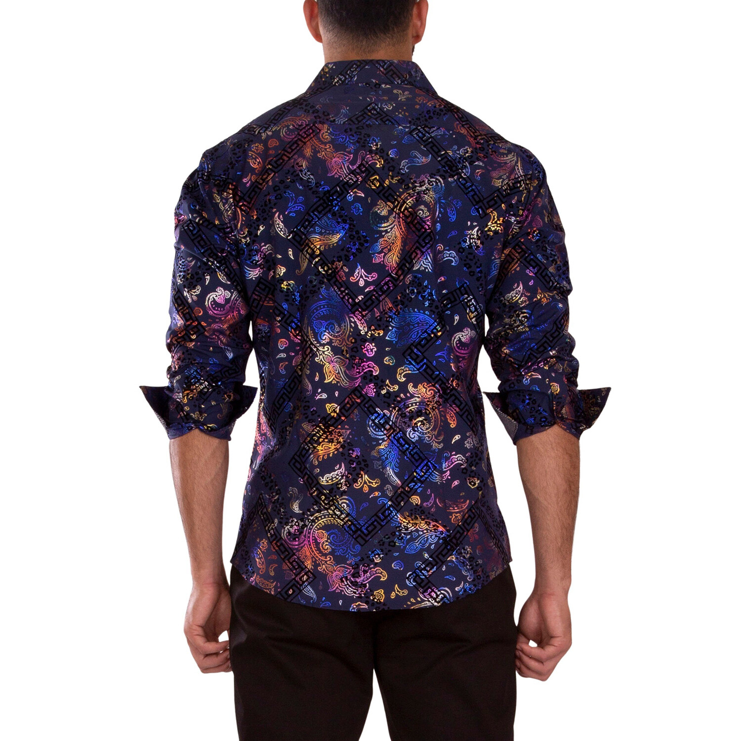 Velvet Greek Key Long Sleeve Dress Shirt // Navy