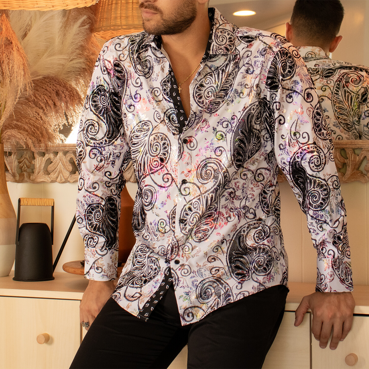 Velvet Paisley Long Sleeve Dress Shirt // White