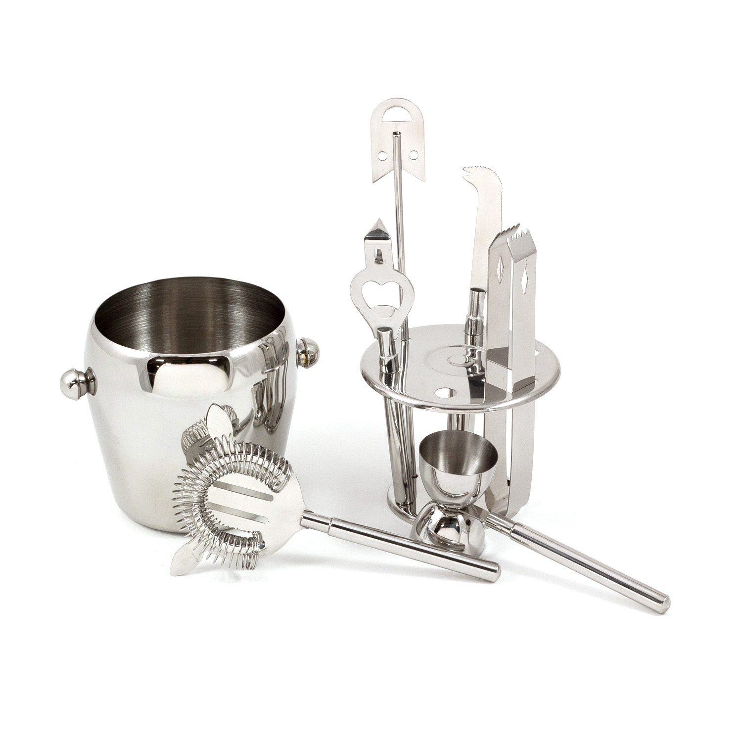This Ice Bucket has everything included. Ideal for that perfect cocktail in a pinch, this seven piece bucket has it all. A measuring cup, stirrer, tongs, bottle opener and bucket are just a few of the premier stainless steel devices that will keep your party fresh and cool all night long.
