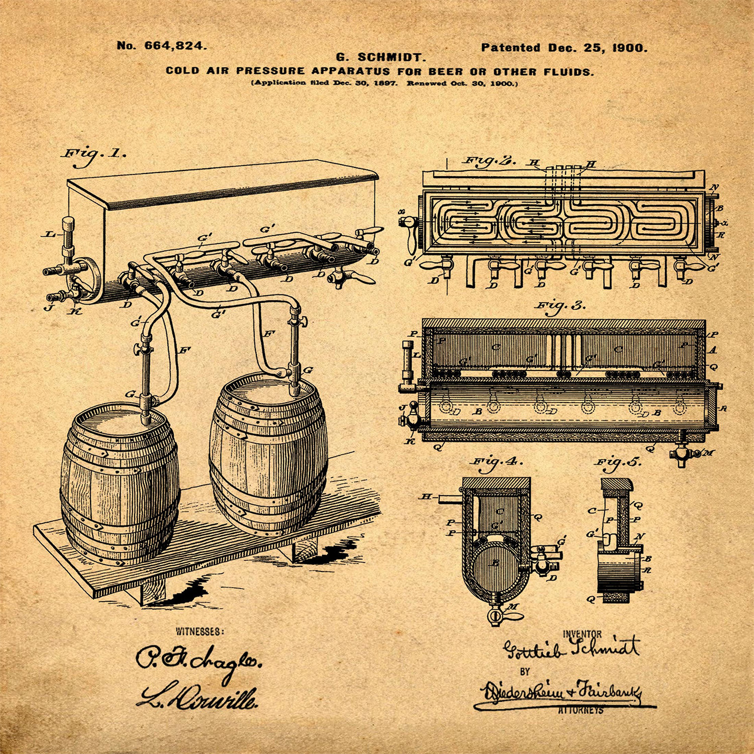 This specially curated collection of Bill Cannon's alcohol-related patent images has been faithfully reproduced on your choice of cotton stretched canvas or 275 gram fine art paper, using state-of-the-art digital printing. Each one features real, old-school patent designs of technology, gadgets, and processes involved in the creation and consumption of spirits, for a timeless, historical, and subtly fun piece of art that complements any decor.
