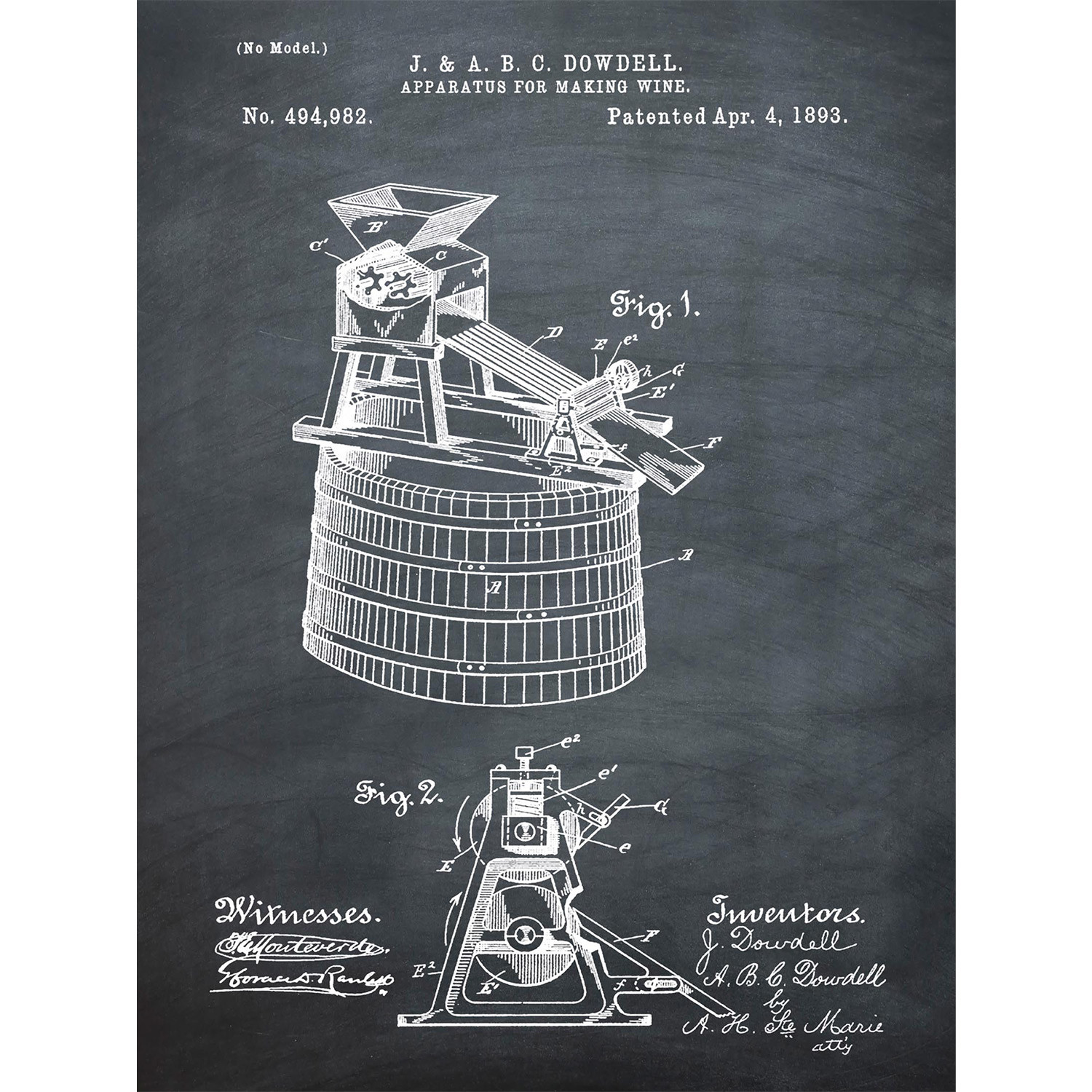 This specially curated collection of Bill Cannon's alcohol-related patent images has been faithfully reproduced on your choice of cotton stretched canvas or 275 gram fine art paper, using state-of-the-art digital printing. Each one features real, old-school patent designs of technology, gadgets, and processes involved in the creation and consumption of spirits, for a timeless, historical, and subtly fun piece of art that complements any decor.
