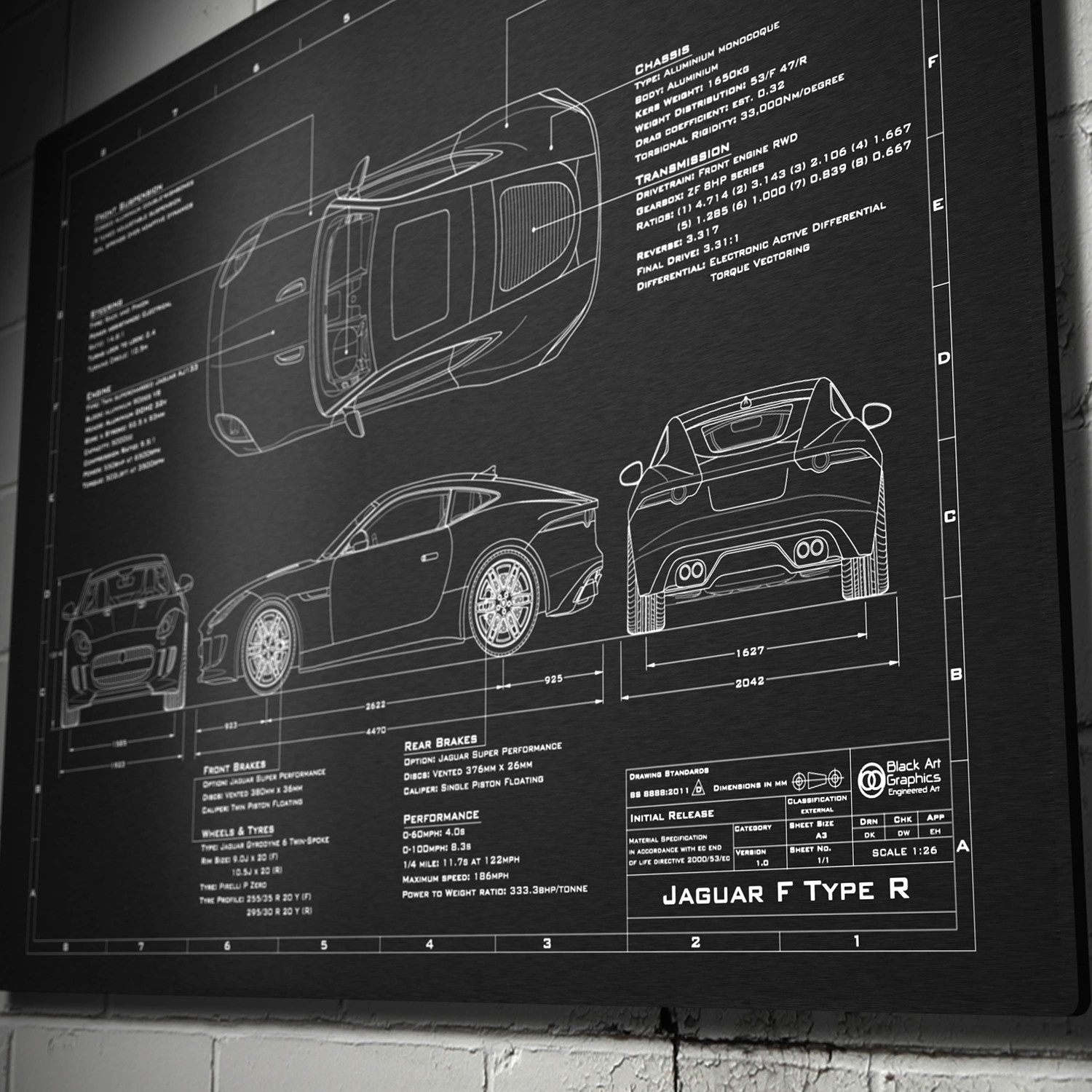 Celebrate your favorite iconic automobile in a totally unique way with this laser engraved anodized aluminum print. It features a high definition blueprint illustration, achieved from a unique photoshoot process to ensure accurate, realistic proportions.