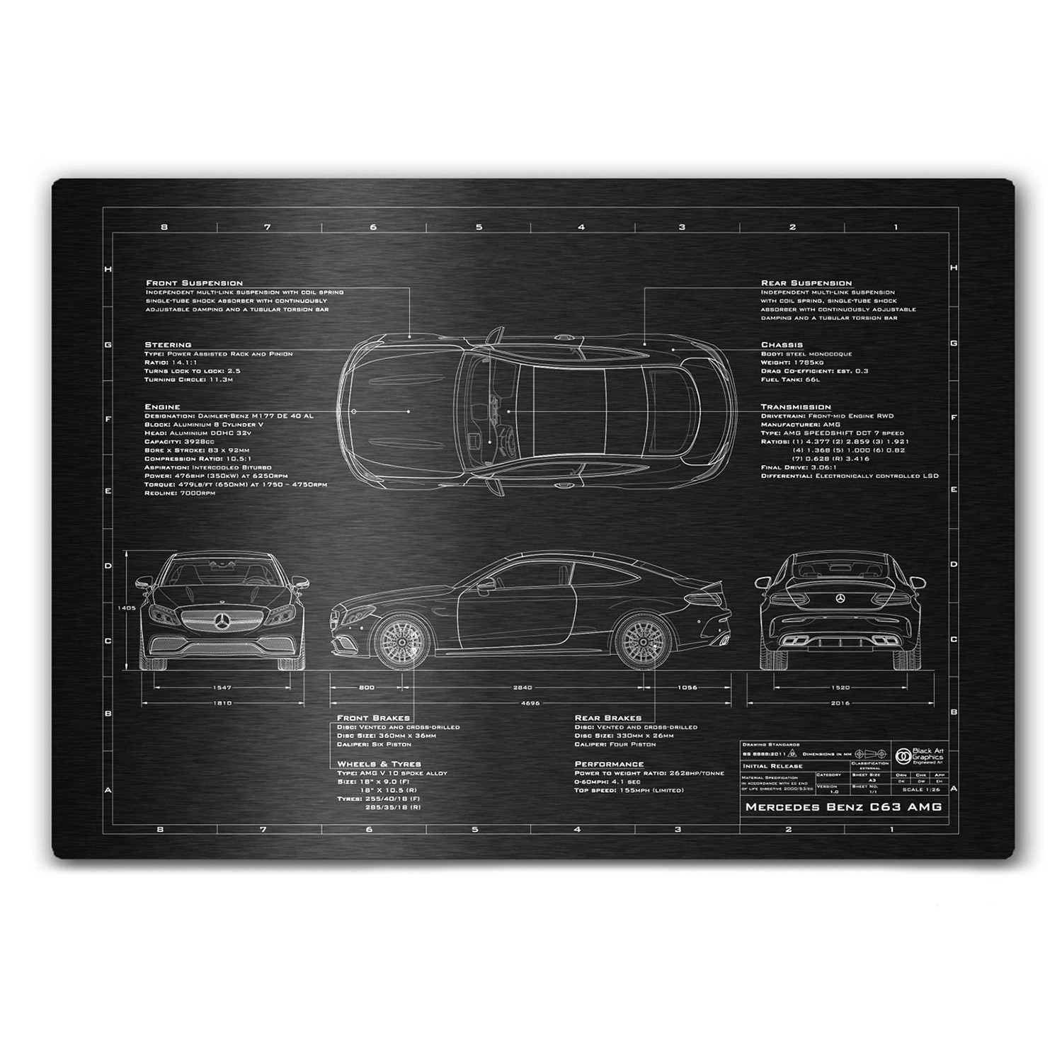 Celebrate your favorite iconic automobile in a totally unique way with this laser engraved anodized aluminum print. It features a high definition blueprint illustration, achieved from a unique photoshoot process to ensure accurate, realistic proportions.