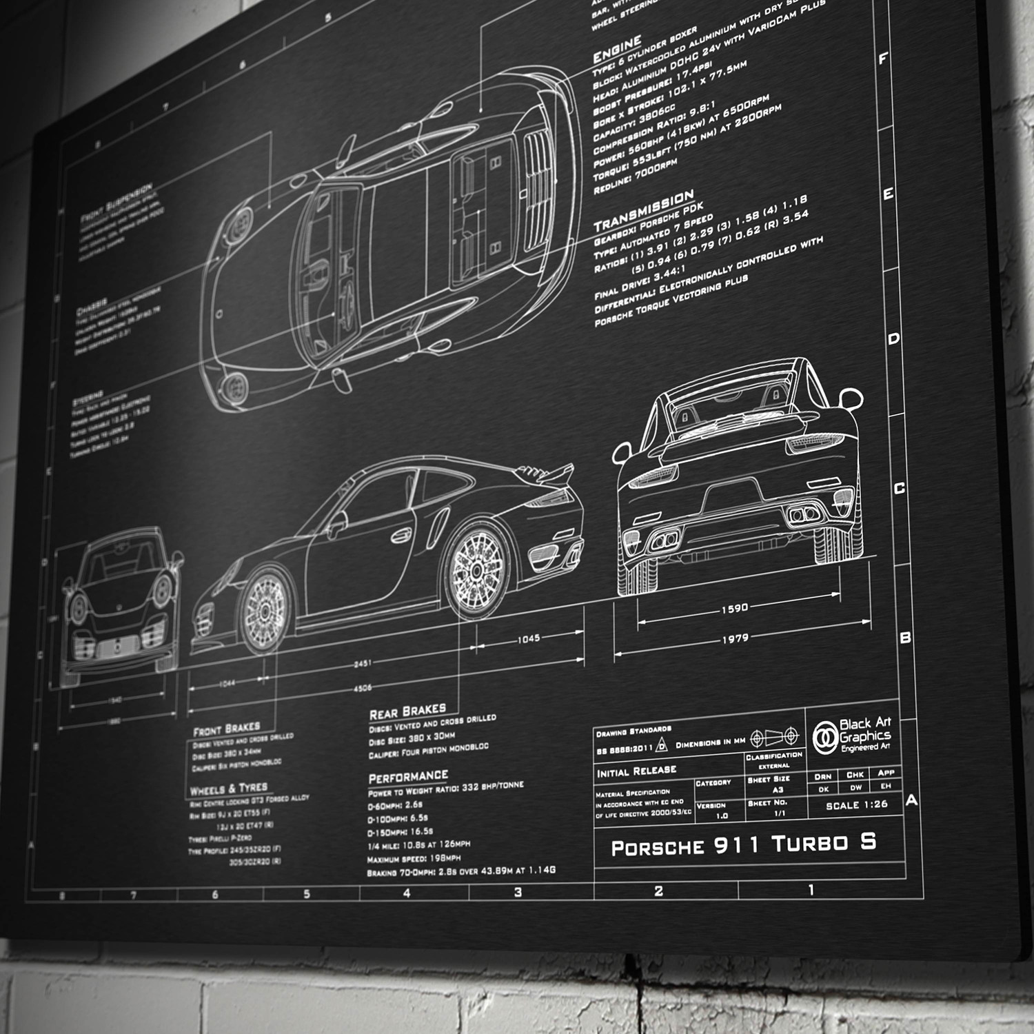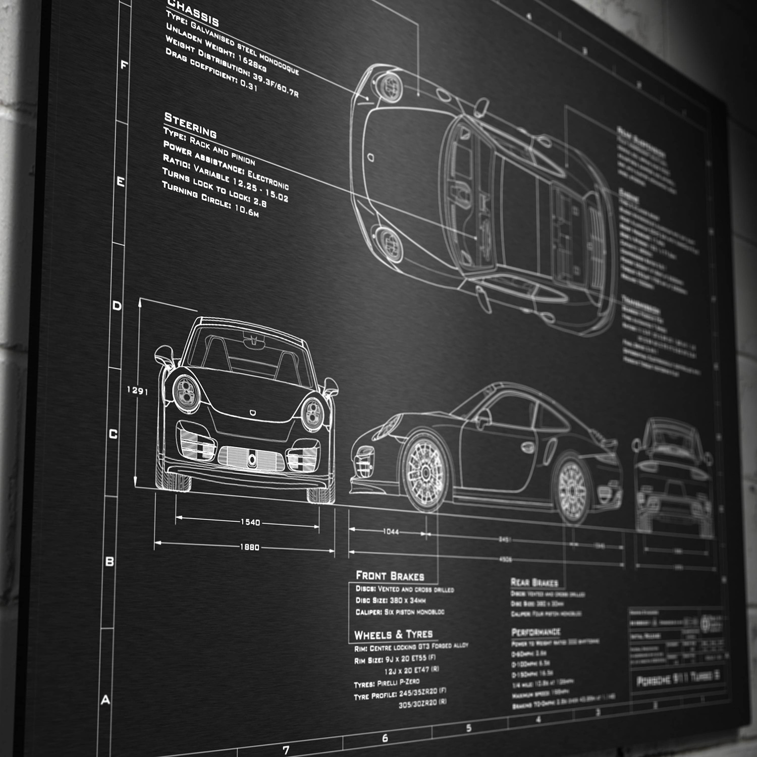 Celebrate your favorite iconic automobile in a totally unique way with this laser engraved anodized aluminum print. It features a high definition blueprint illustration, achieved from a unique photoshoot process to ensure accurate, realistic proportions.