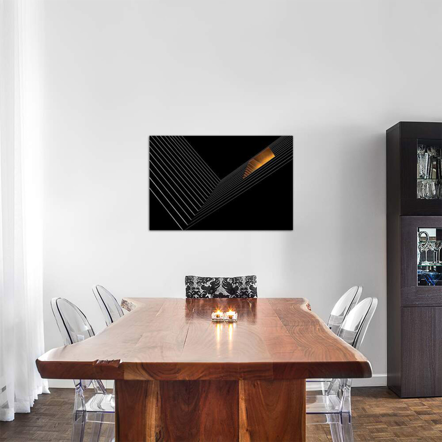 Add an air of mystery and intrigue to your walls with this collection of abstract art prints. Featuring strong pallet of black, gold, and white, as well as imaginative shapes and lines, these mind-bending pieces are designed to complement a space without breaking the bank.