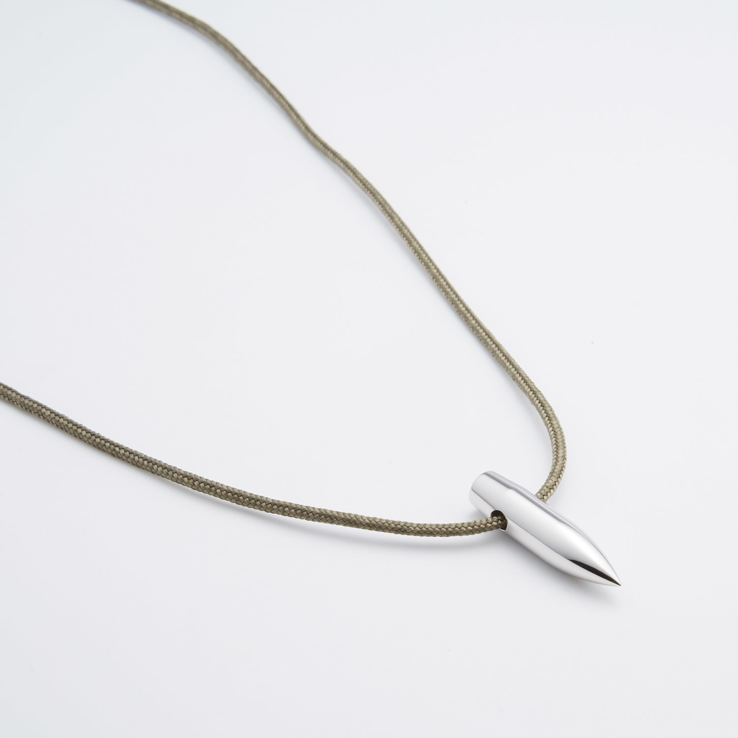 The .308 Winchester is made of solid, pure 925 sterling silver and is an exceptionally high-quality piece. This unique BlackBullet bullet pendant has been created from an original cast of a .308 Winchester bullet tip. The casting and the pendant itself correspond 100% to the original model.