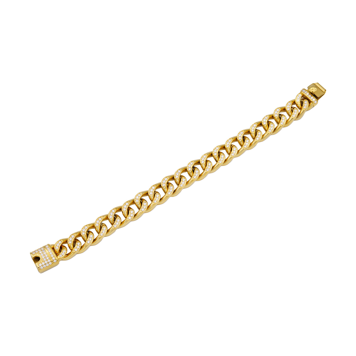 Pave CZ Gold Stainless Steel Miami Cuban Link Bracelet // 8.5"