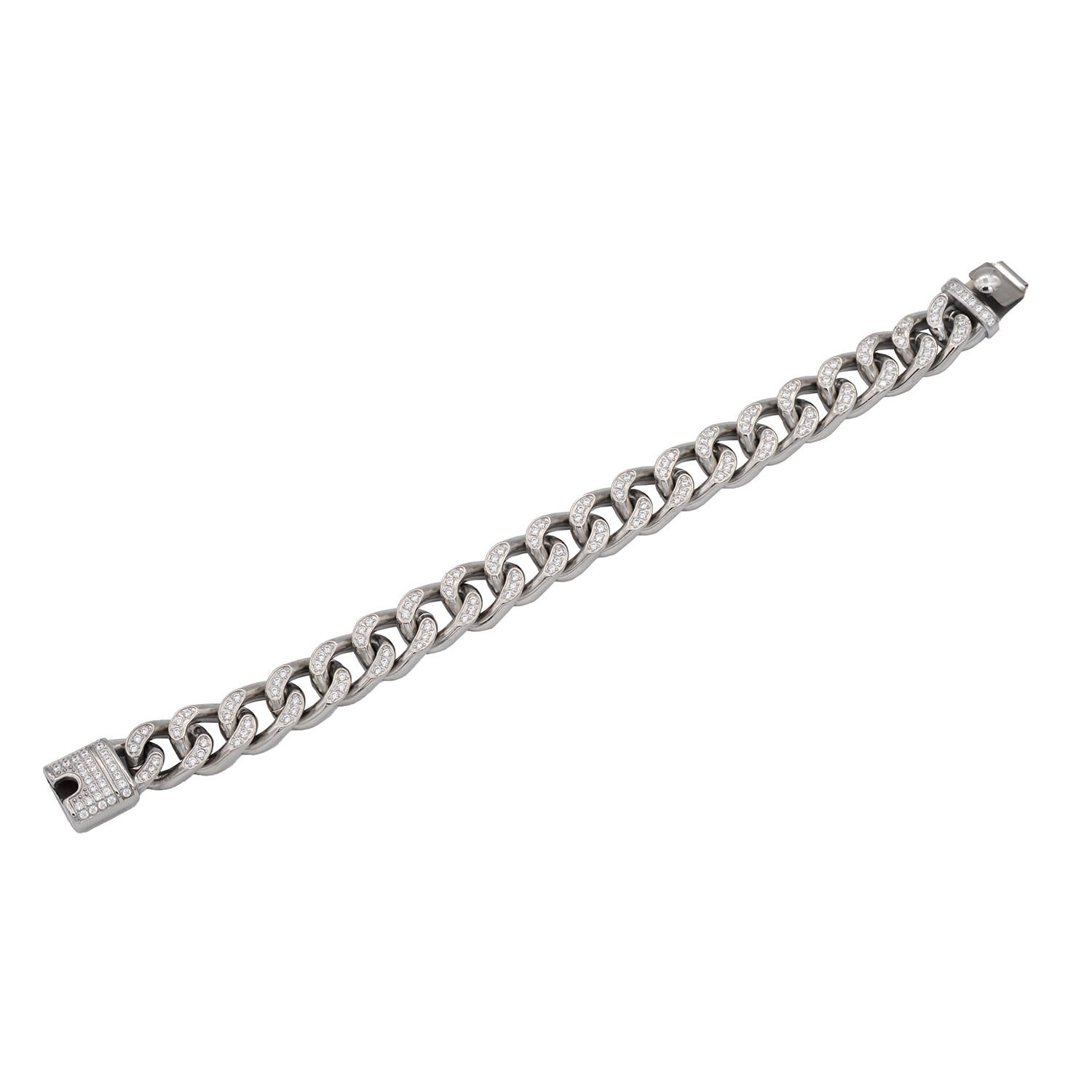 Pave CZ Polished Stainless Steel Miami Cuban Link Bracelet // 8.5"