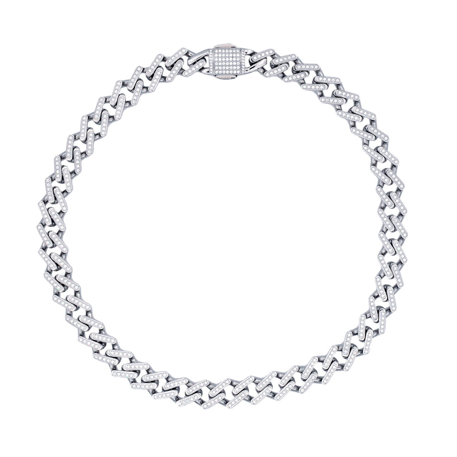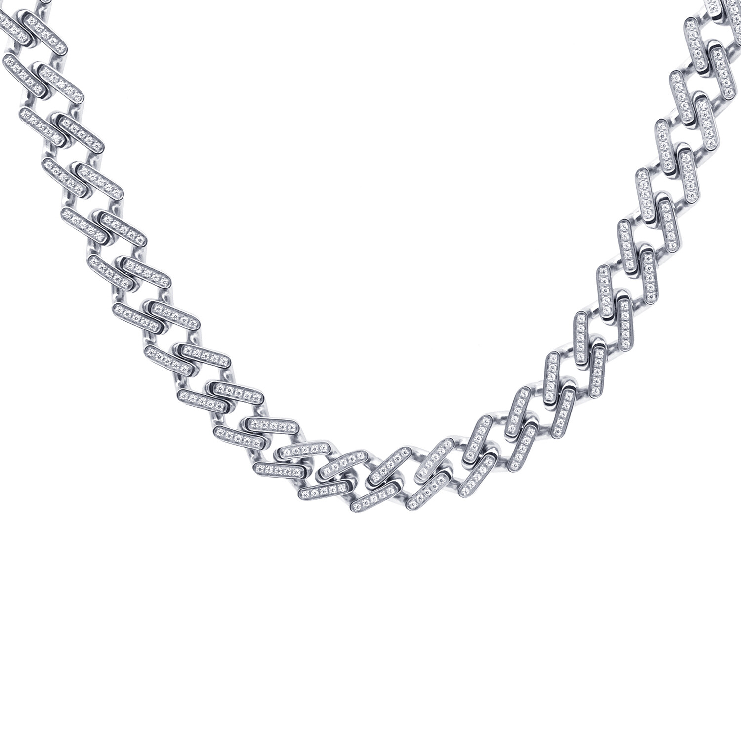 Polished Stainless Steel CZ Encrusted Monaco Link Chain Necklace // 20"
