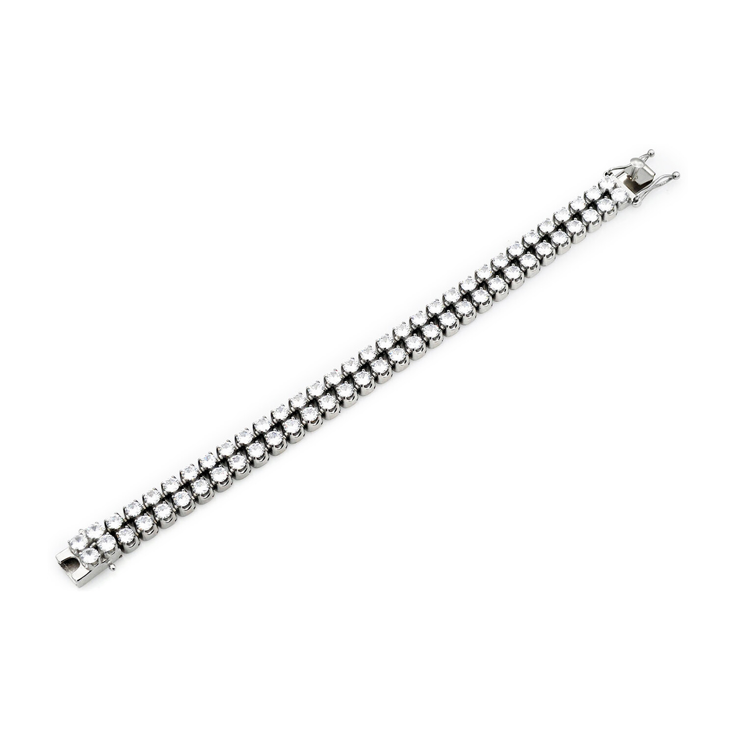 Polished Stainless Steel Double Row CZ Tennis Bracelet // 8.5"