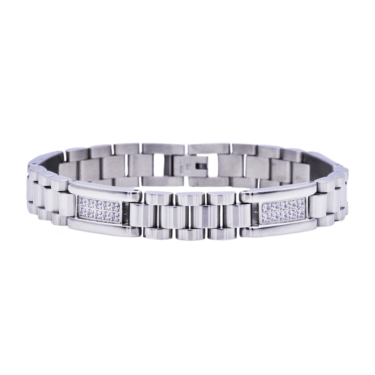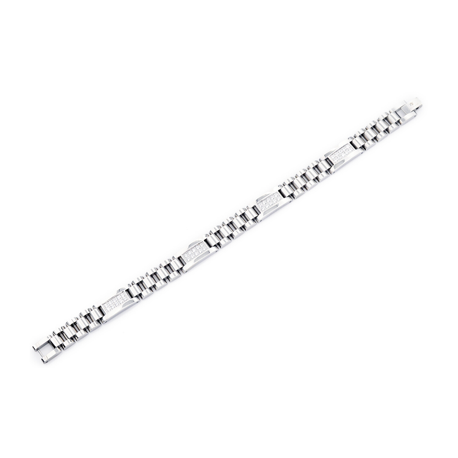 Polished Stainless Steel Micro Link CZ Bracelet // 8.5"