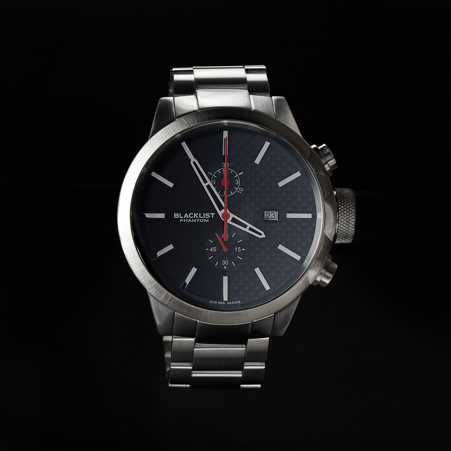 The Phantom, named for its stealthy appearance, is the watch likely to ignite conversation and make your friends jealous. Designed to show just the right amount of carbon sexiness to keep it intriguing, it features a 30 minute counter, a 12 hour counter, a date display and a Swiss-made quartz movement. From the office to nights out on the town, this watch is going to impress.