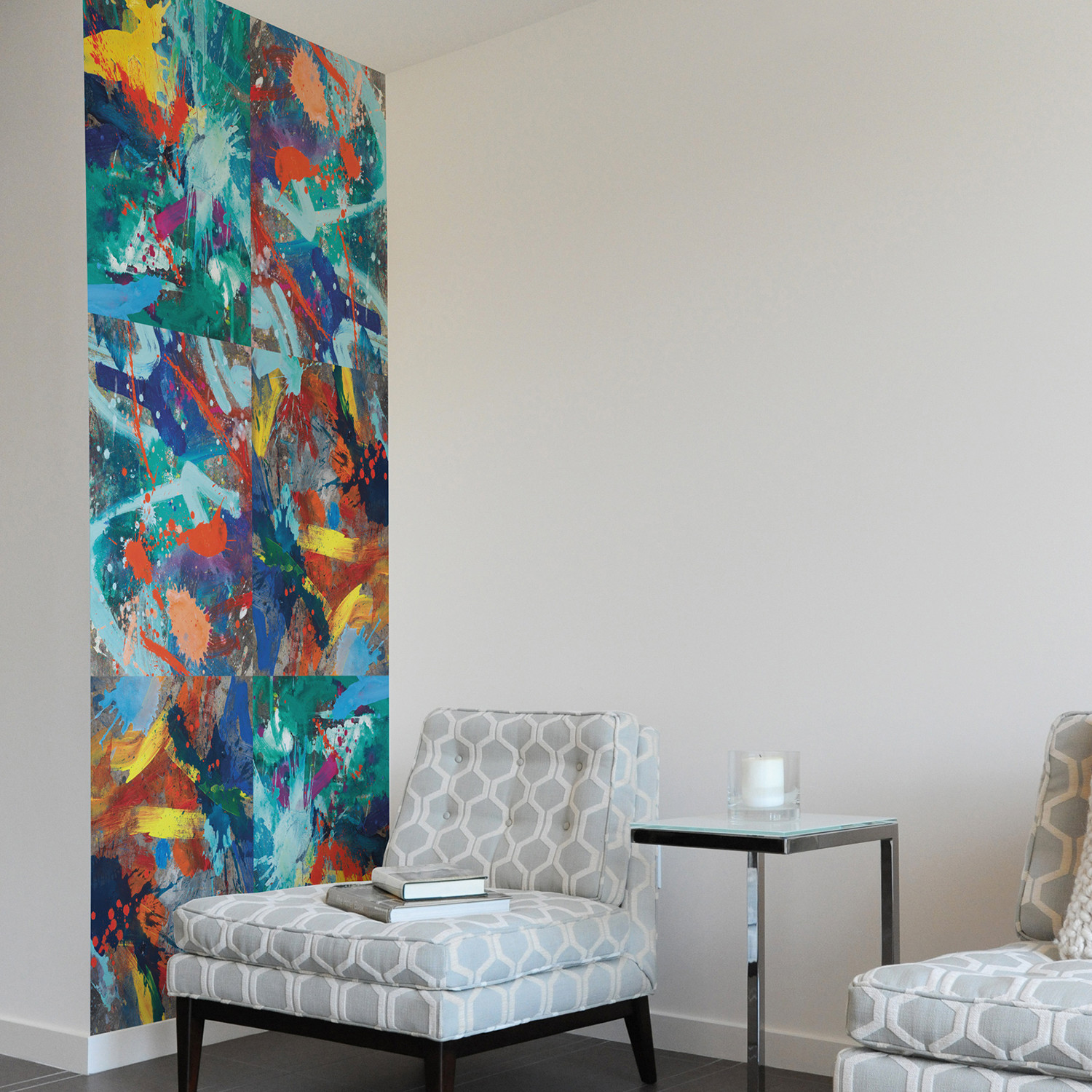 These removable, adhesive wall decals can be arranged in infinite ways. Feel free to rotate them, combine patterns, cut them, and use them on any smooth, flat surface to bring colorful detail to your favorite space.
