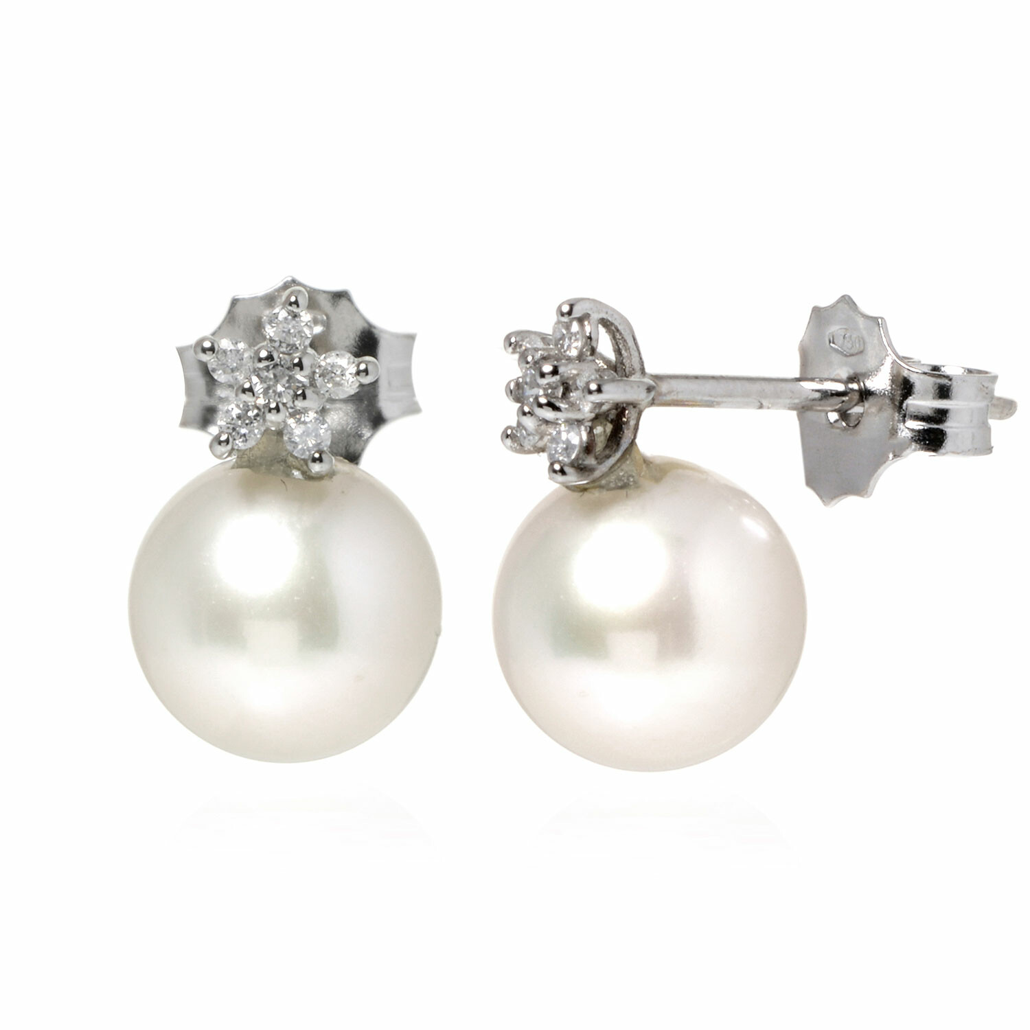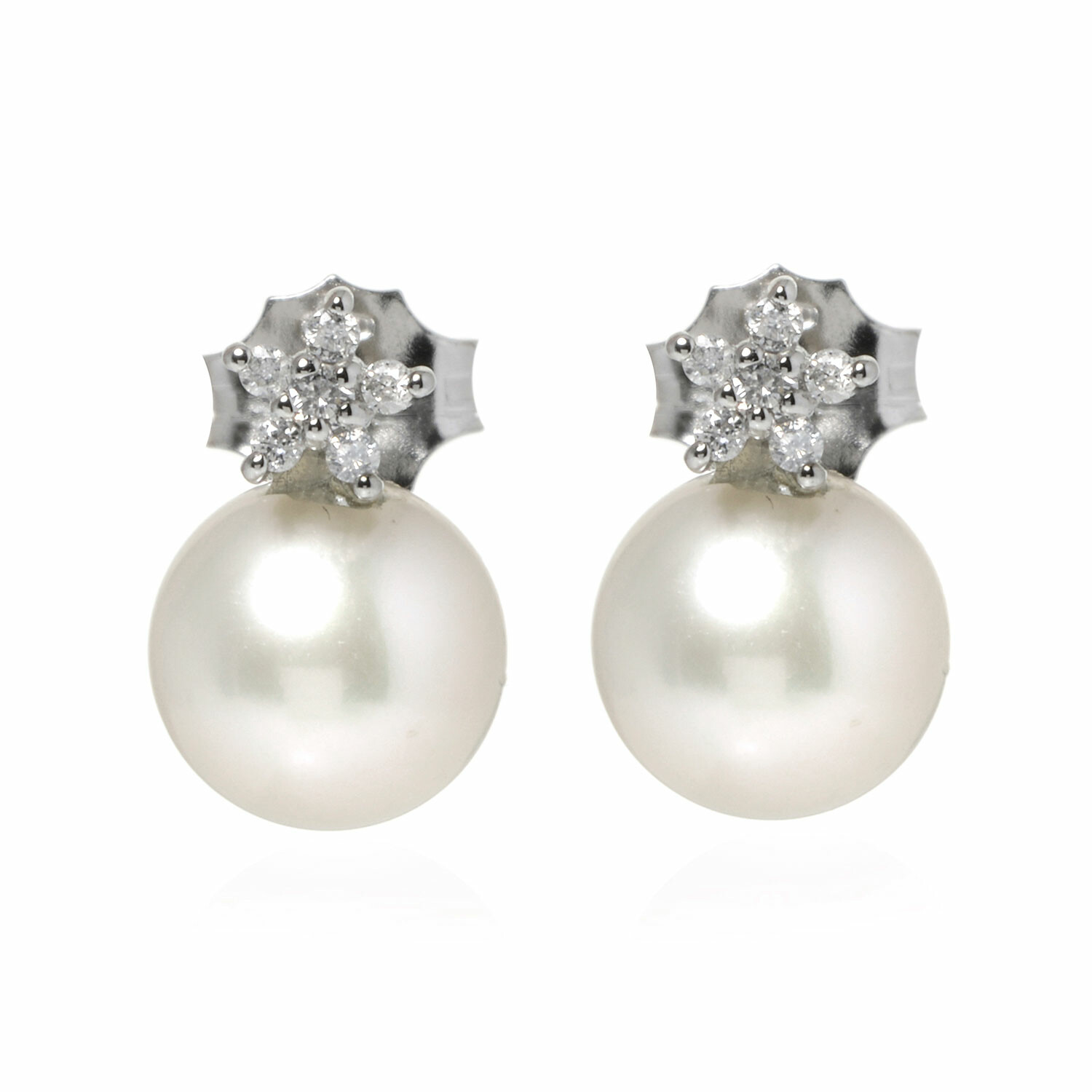 Mademoiselle 18K White Gold Diamond + Pearl Earrings // Store Display
