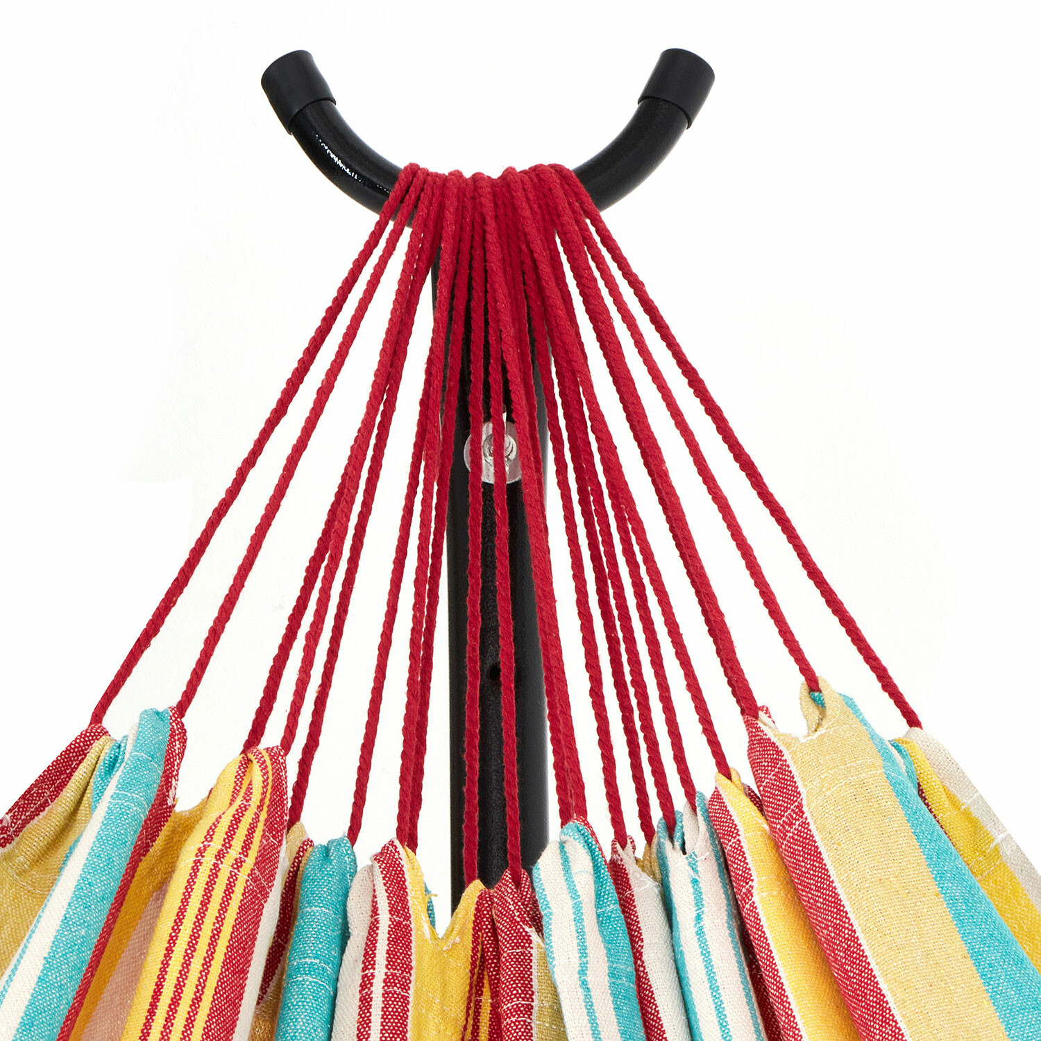 Melt away the stress of the week as you sway in the breeze in this Double Hammock and Stand combo. Both practical and stylish, the hammock bed is big enough to accommodate two adults and its weight capacity can reach 400 lb. This double hammock and stand set features a 9 ft. stand with powder coated steel, is extremely easy to assemble, and has unique adjustment levels to use with multiple hammock lengths.