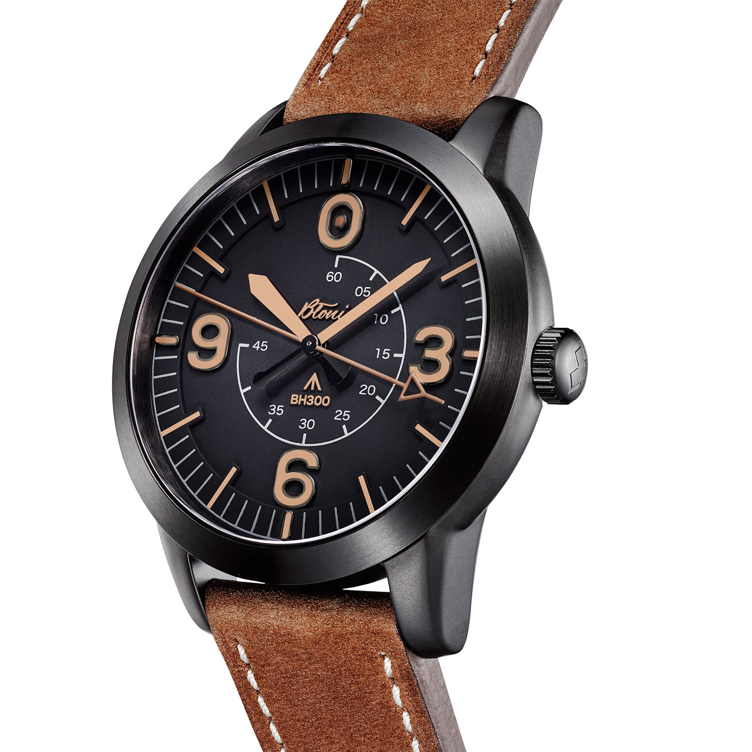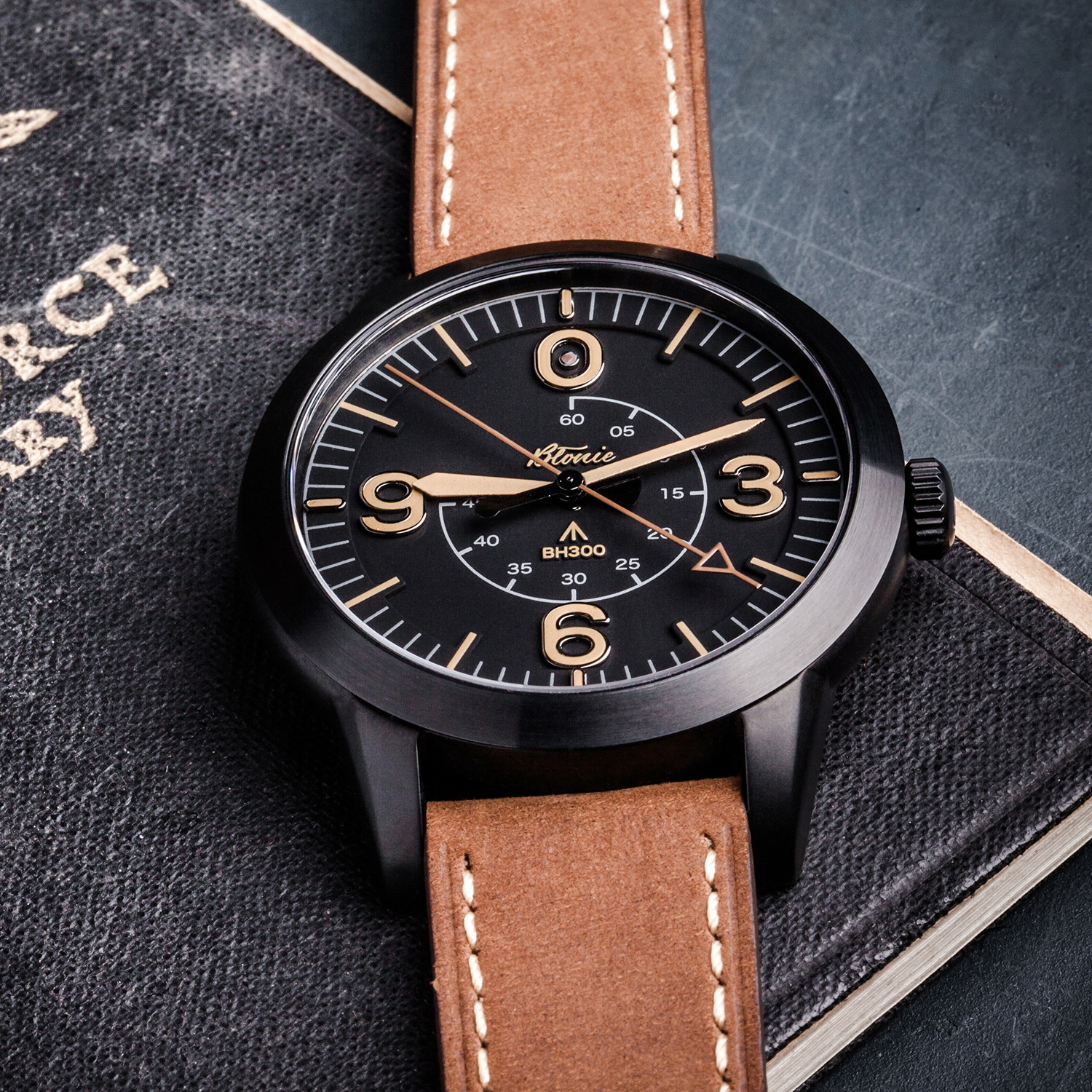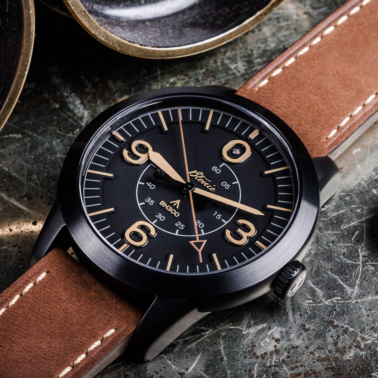 Classic and sophisticated, this Błonie Automatic features a precision Swiss movement with Geneva stripes and 24 jewels. The custom rotor in the shape of a Lancaster plane can be seen through the glass caseback.