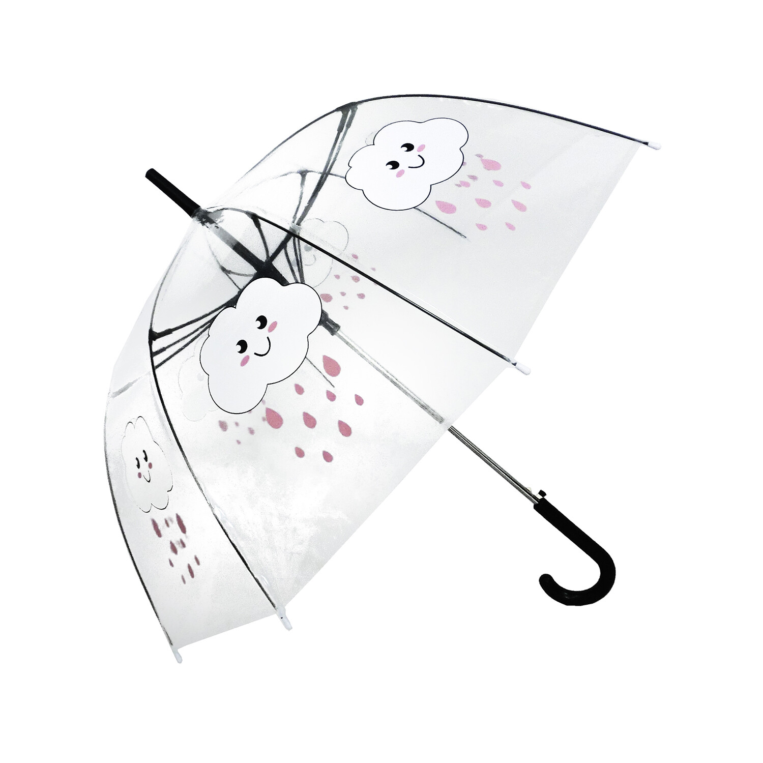 PO E Fabric (0..9 Mm), Full Fiberglass Windproof Frame, 10 Mm Chrome Plated Metal Shaft, Plastic Curved Handle, Plastic Top And Tips