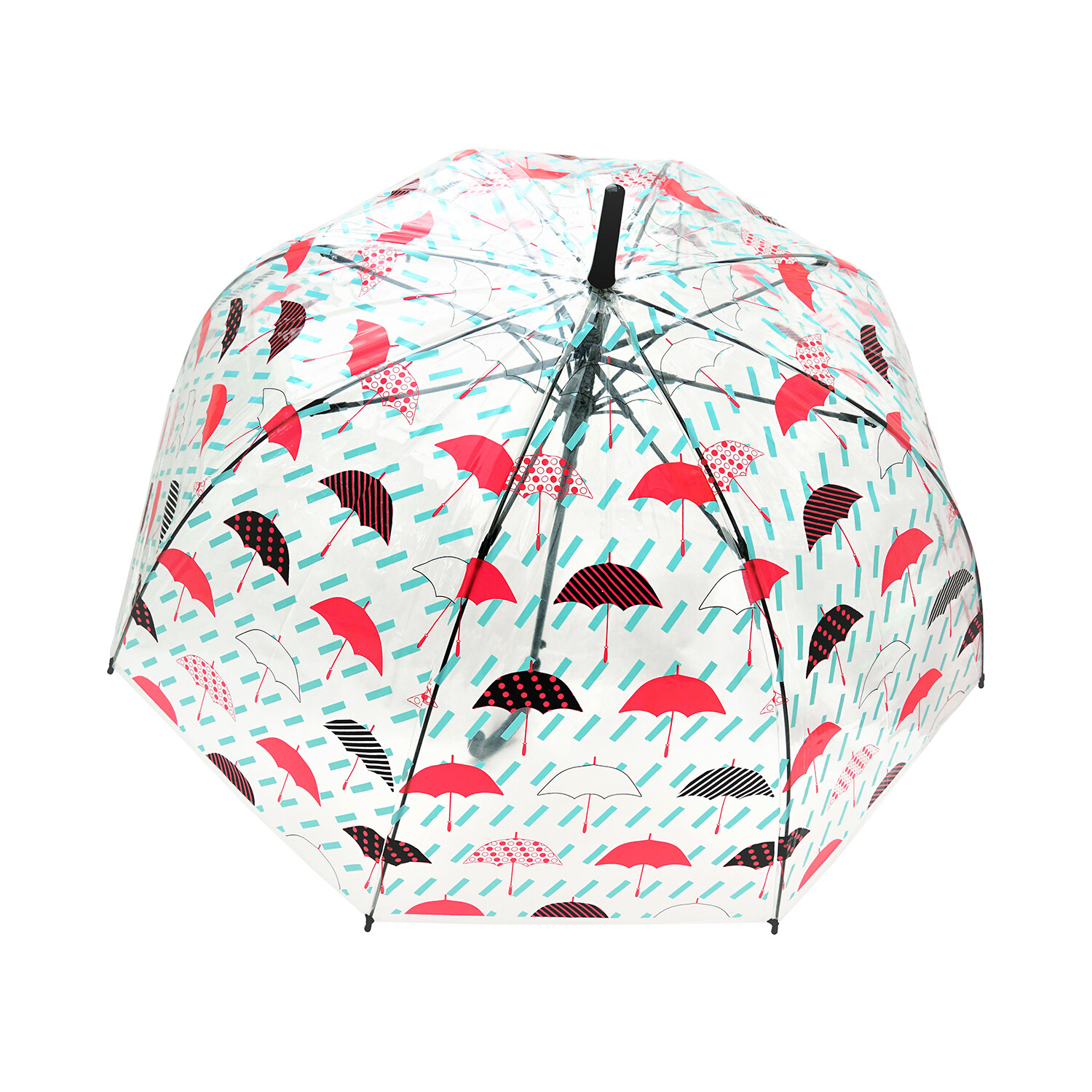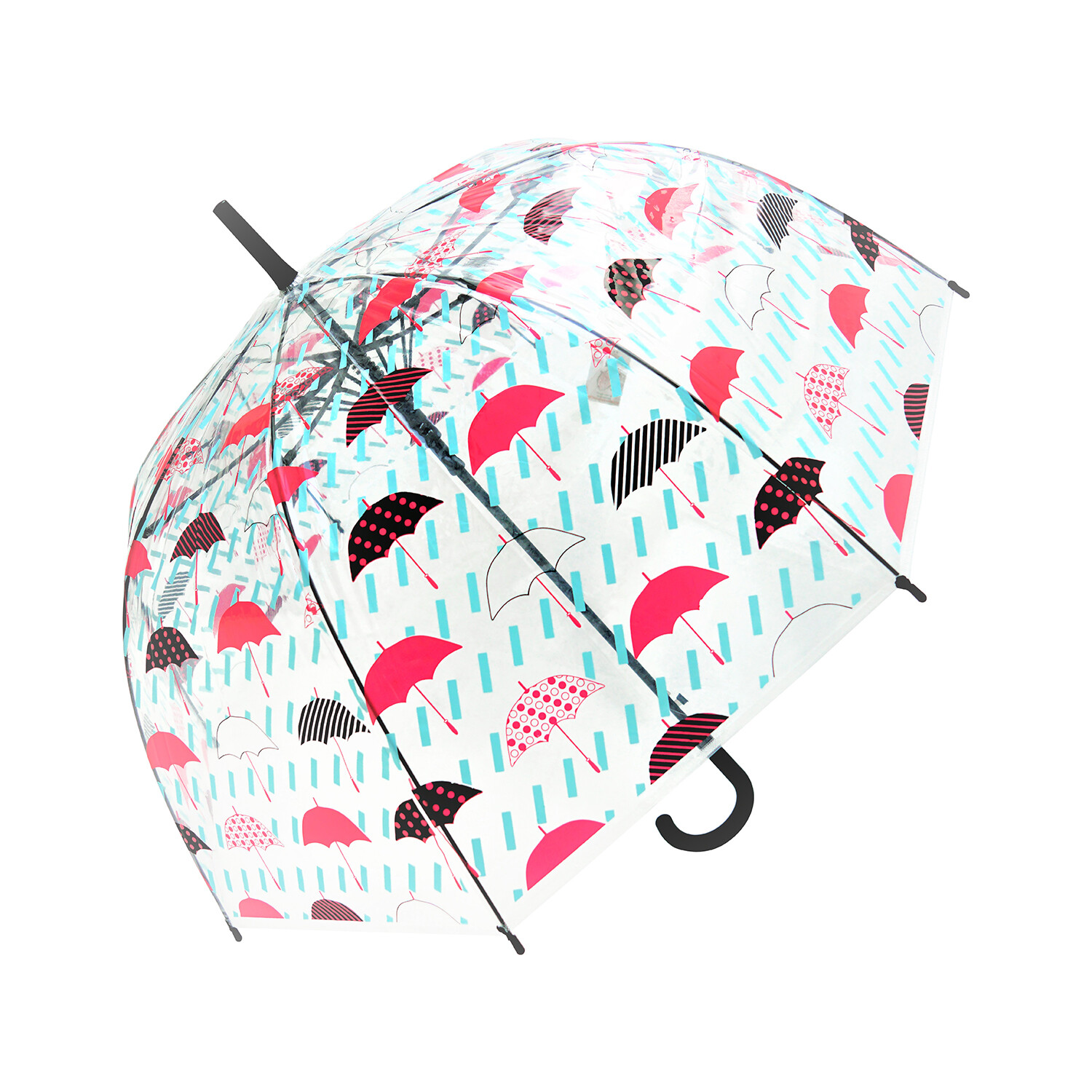 PO E Fabric (0..9 Mm), Full Fiberglass Windproof Frame, 10 Mm Chrome Plated Metal Shaft, Plastic Curved Handle, Plastic Top And Tips