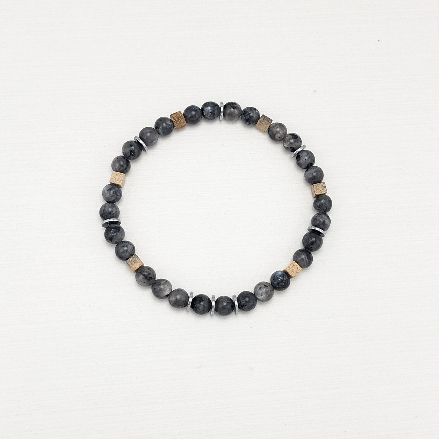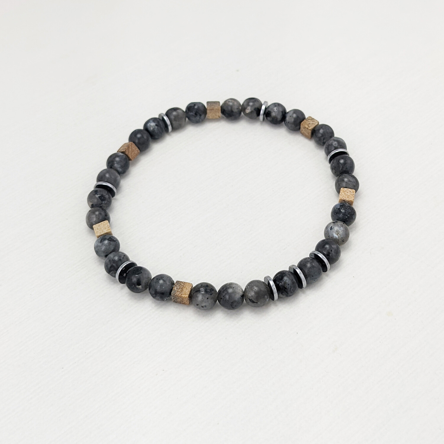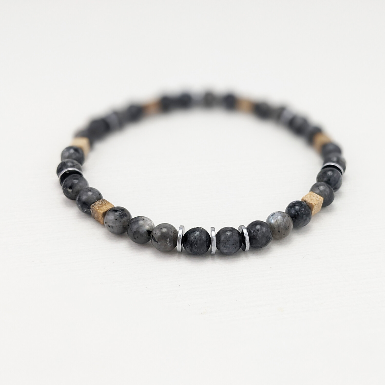 Labradorite + Picture Jasper Bead Bracelet // Gray + Brown + Silver
