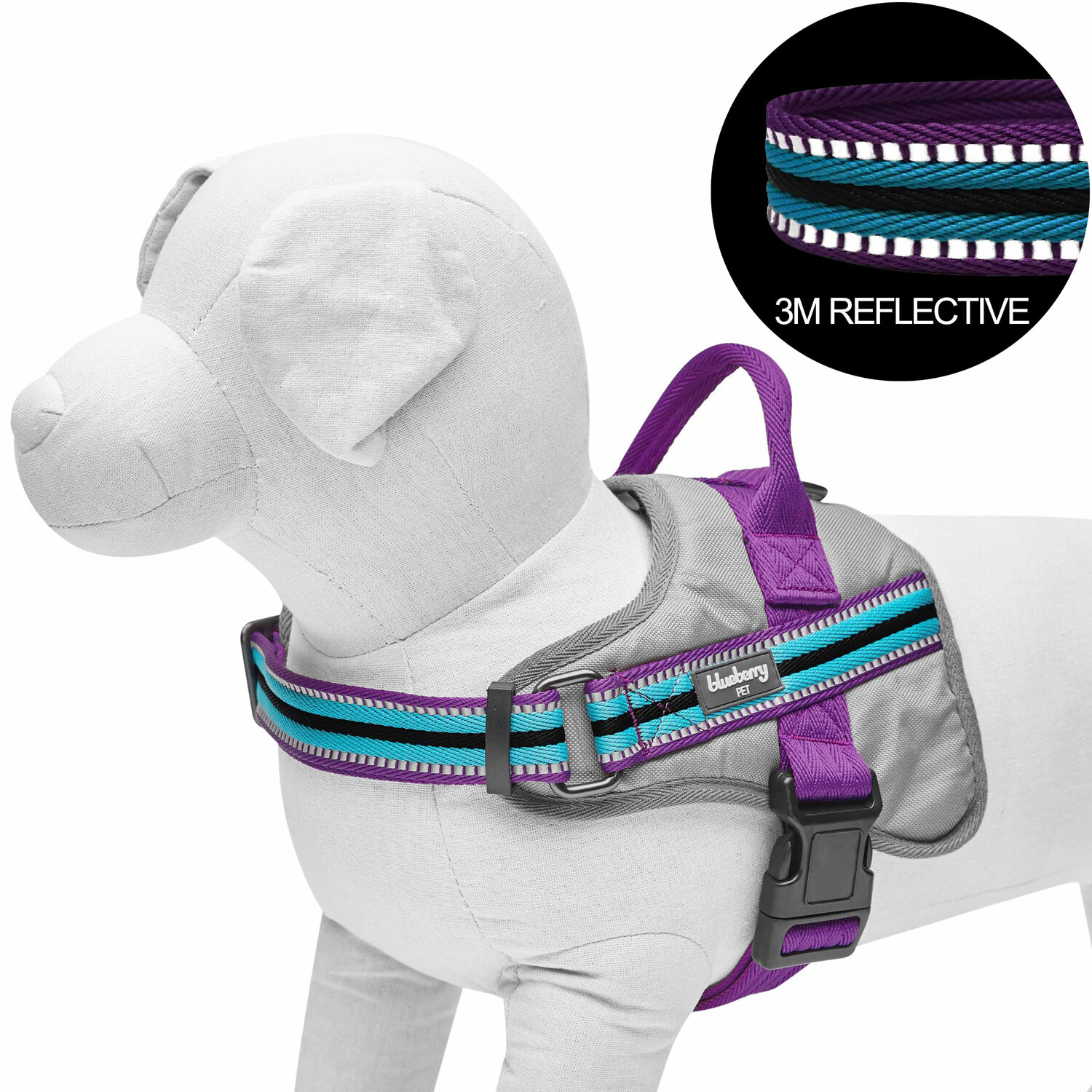 3M Reflective Multi-colored Stripe Service Dog Harness // Violet + Celeste