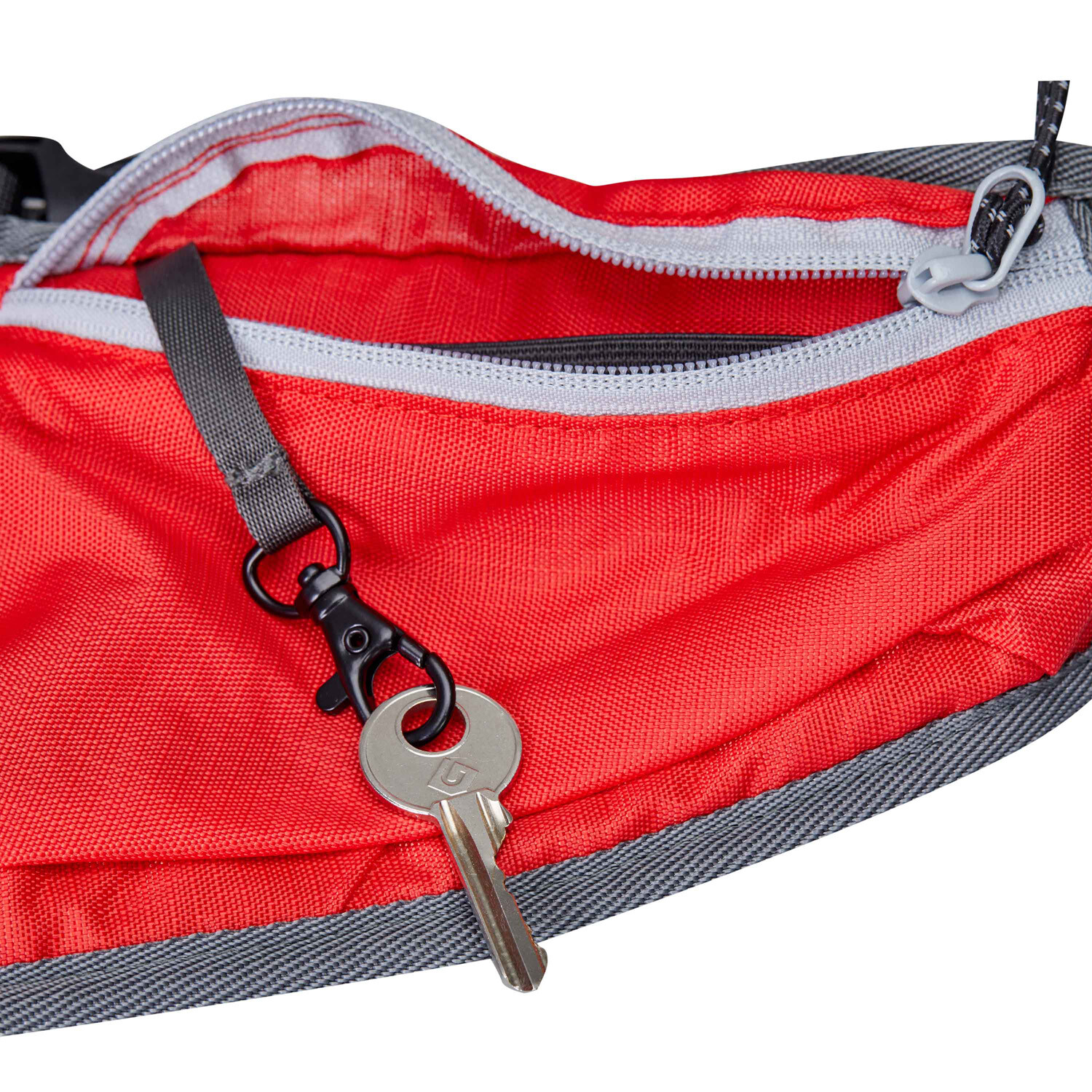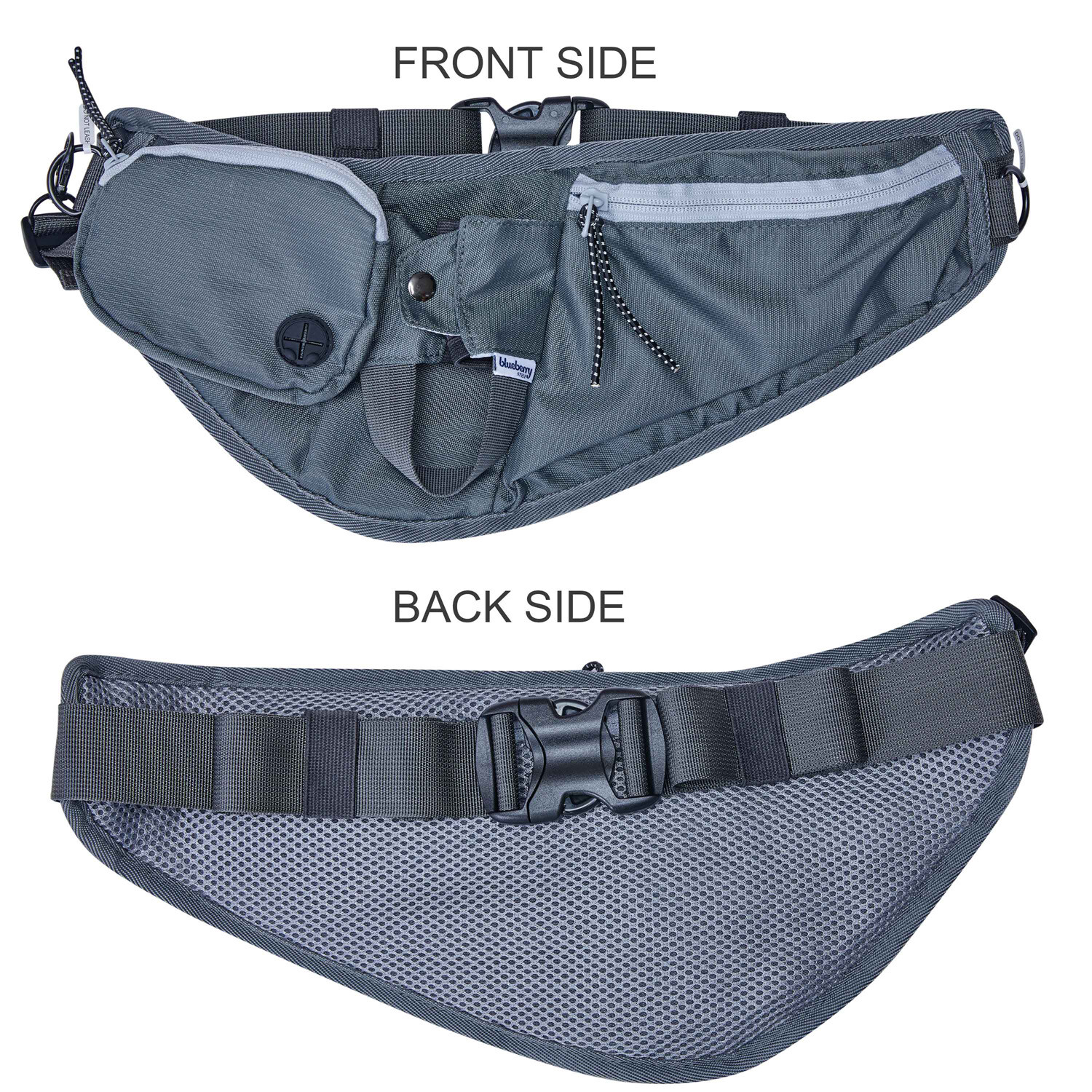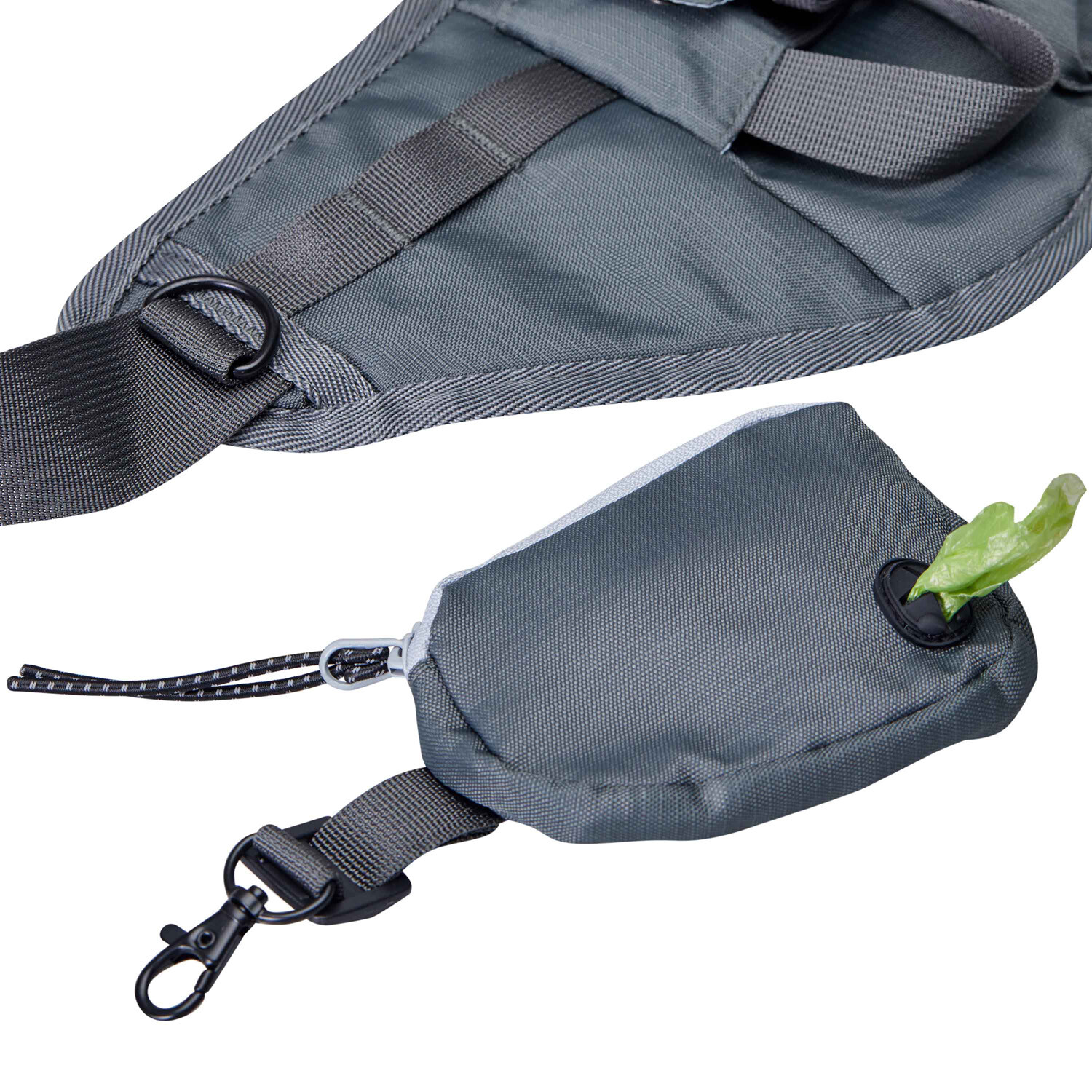 The Bumbag Waist Bag Fanny Pack provides an all-in-one bag for walking your dogs, carrying essentials, and providing convenience whenever needed. It features a detachable pocket for snacks and waste bags. It also boasts a secured water-bottle holder. The front flap pocket with zip closure has been divided into two compartments and features a built-in clasp for attaching your keys and small items. Finally, there is a zipper pocket on the back that allows you to keep your valuables secure and close at hand.