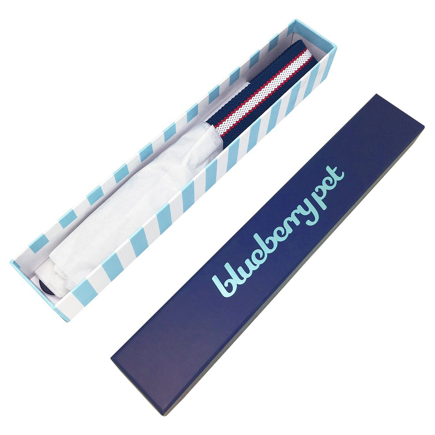 Full Grain Leather & Polyester Adjustable Dog Collar // Navy White + Red