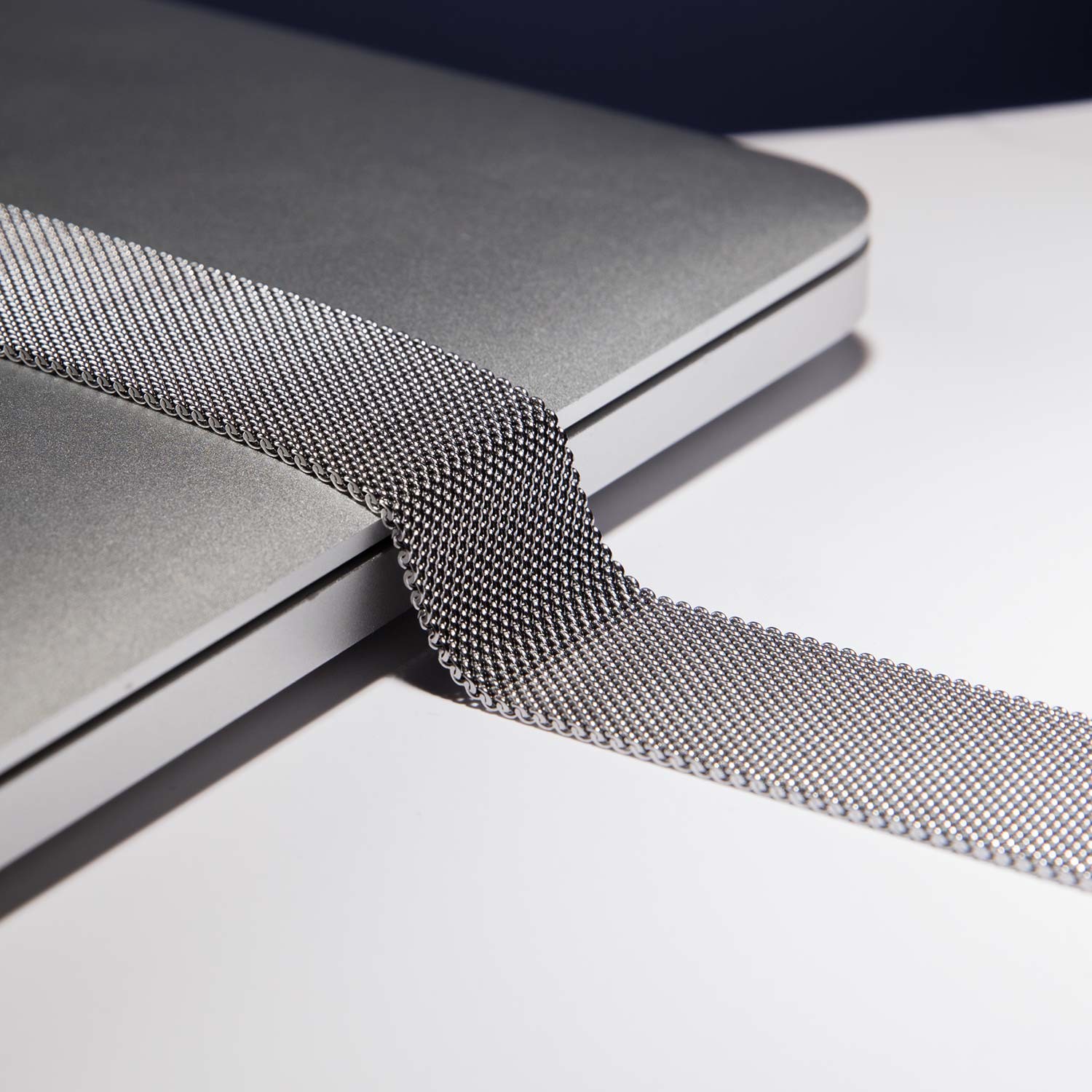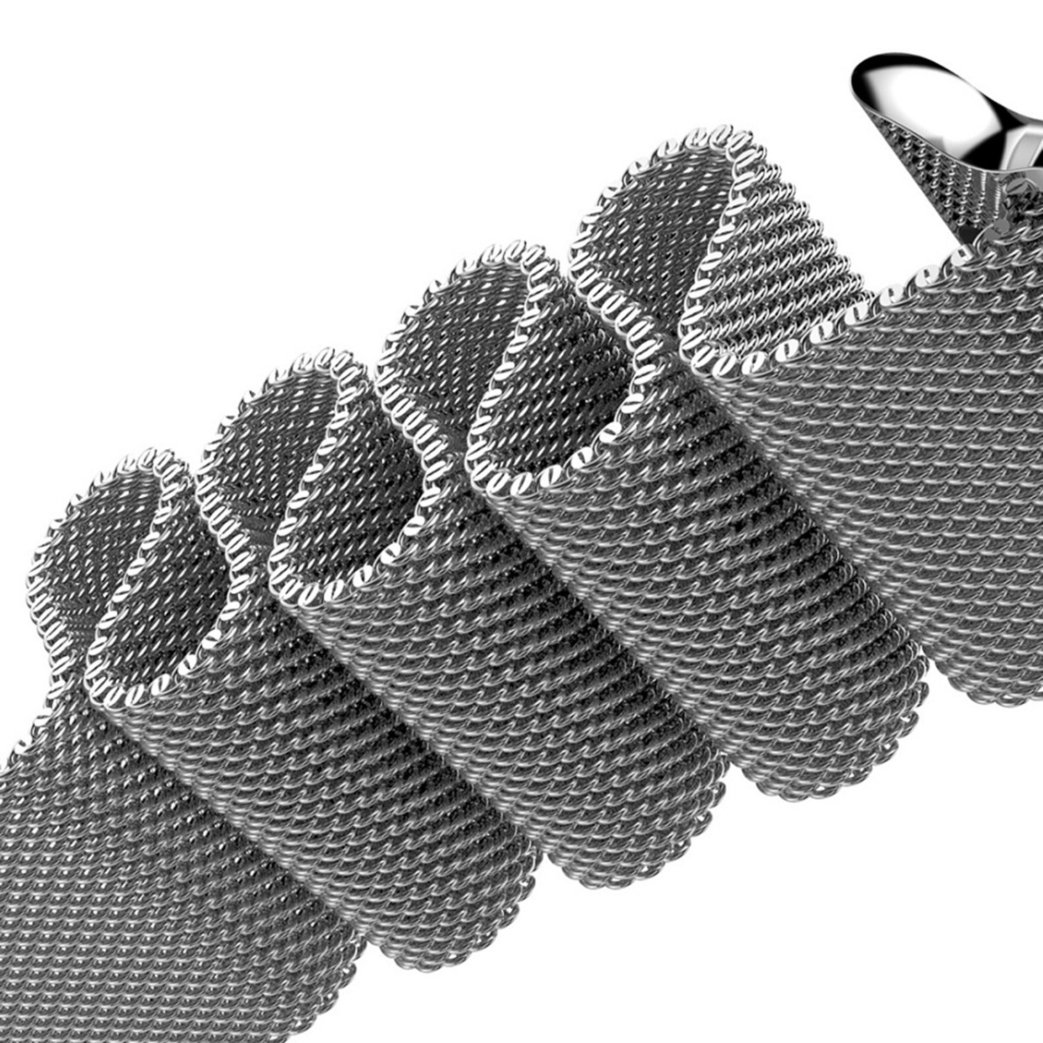 Made of 316L stainless steel, the Silver Apple Watch Milanese Wrist Band is engineered and CNC machined in Germany to the best standards of quality. The magnet attachment is extra strong, so the wrist band will not slip away from your wrist while you're out on the town.