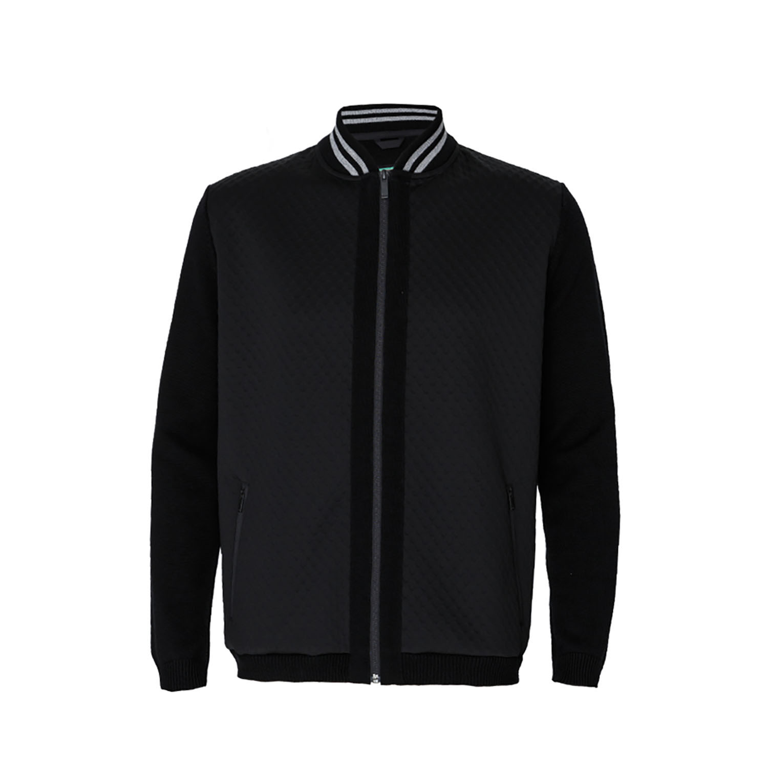 Baseball Collar Knit-Sleeve Jacket // Black