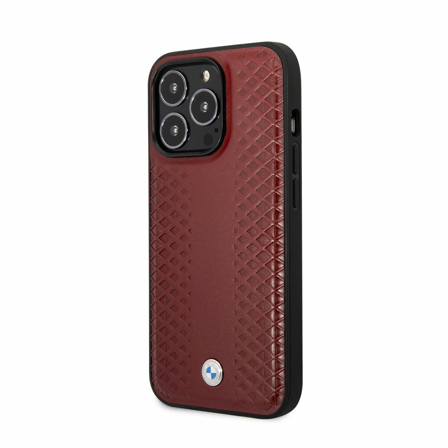 Leather Signature Collection // Genuine Leather iPhone Case // Diamond Hot Stamp Pattern // Red