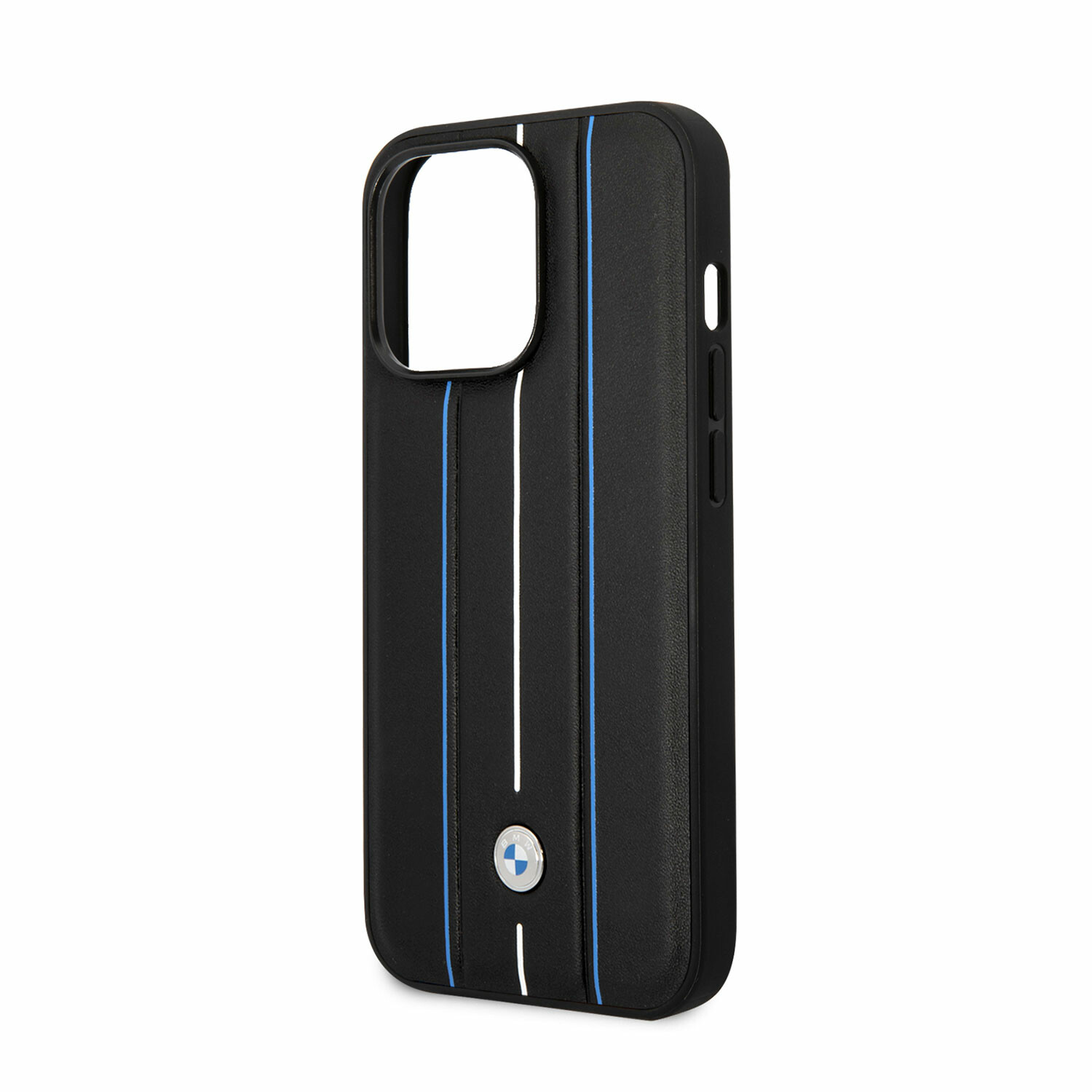 This case features a slim, ergonomic silhouette with a high-quality grip thanks to the soft, supple leather exterior. Directly inspired by both BMW interiors and exteriors, the case is finished with a debossed BMW wordmark, as well as an embossed line and encrusted metal BMW logo accent. Slightly raised edges provide enhanced drop protection and scratch resistance, while precise cutouts allow for easy access to all ports, buttons, and speakers.