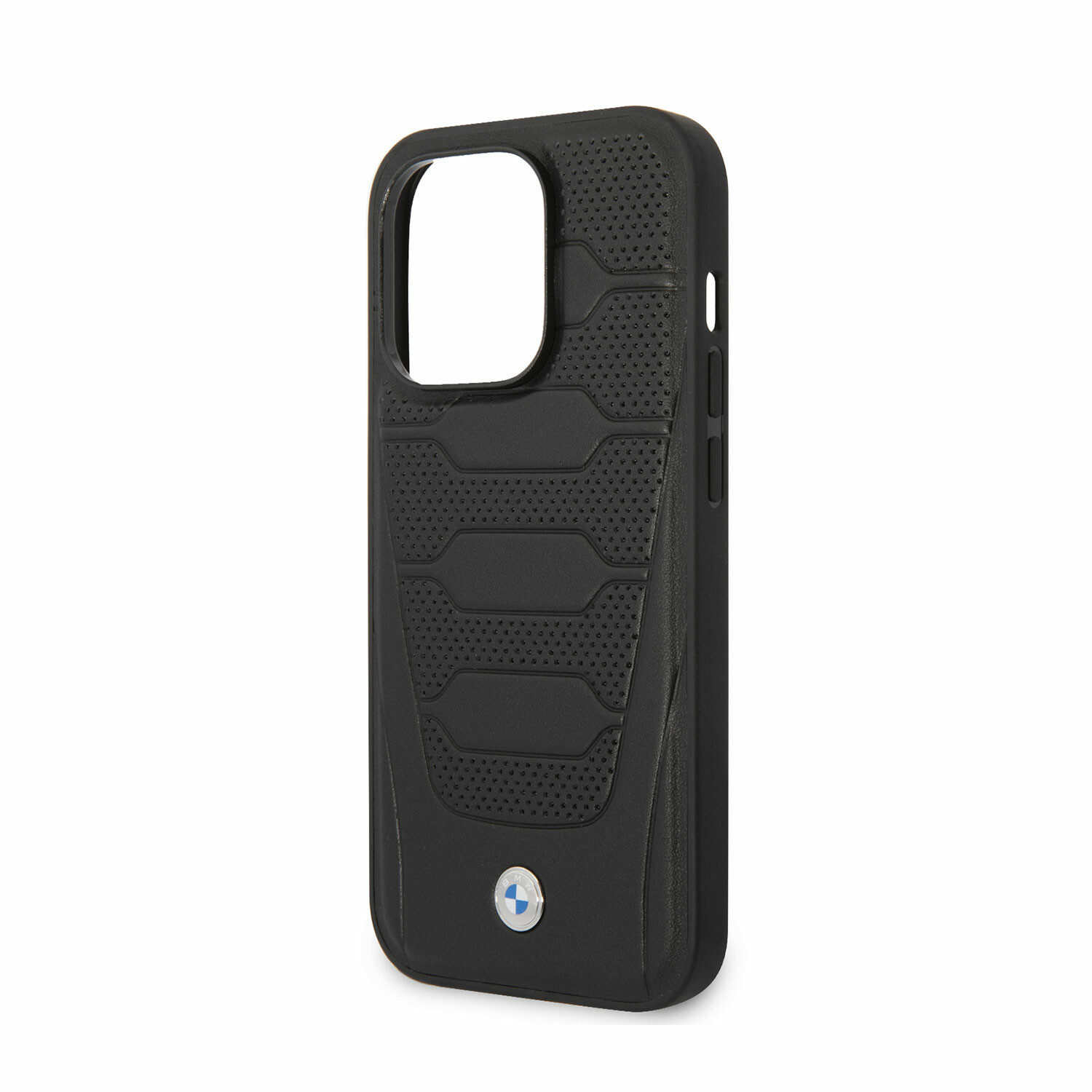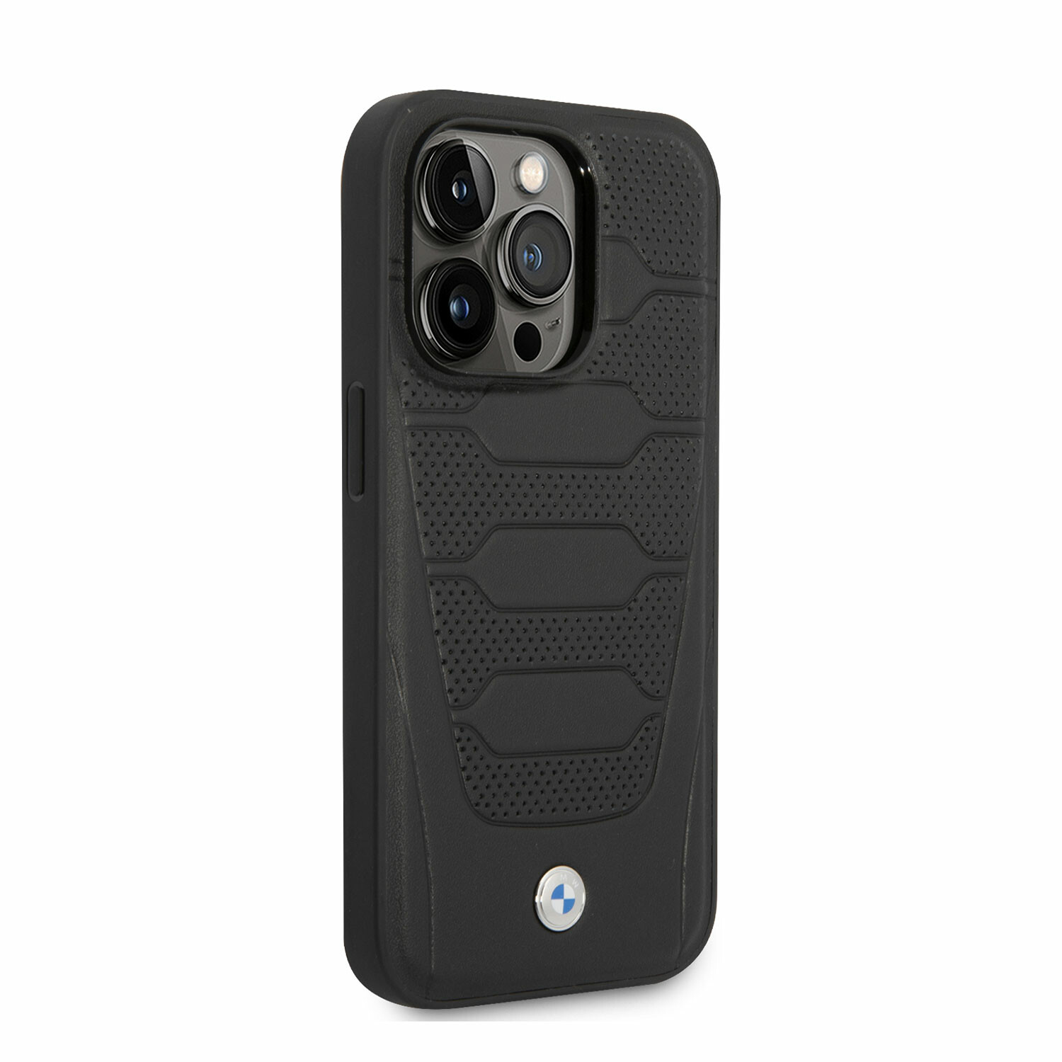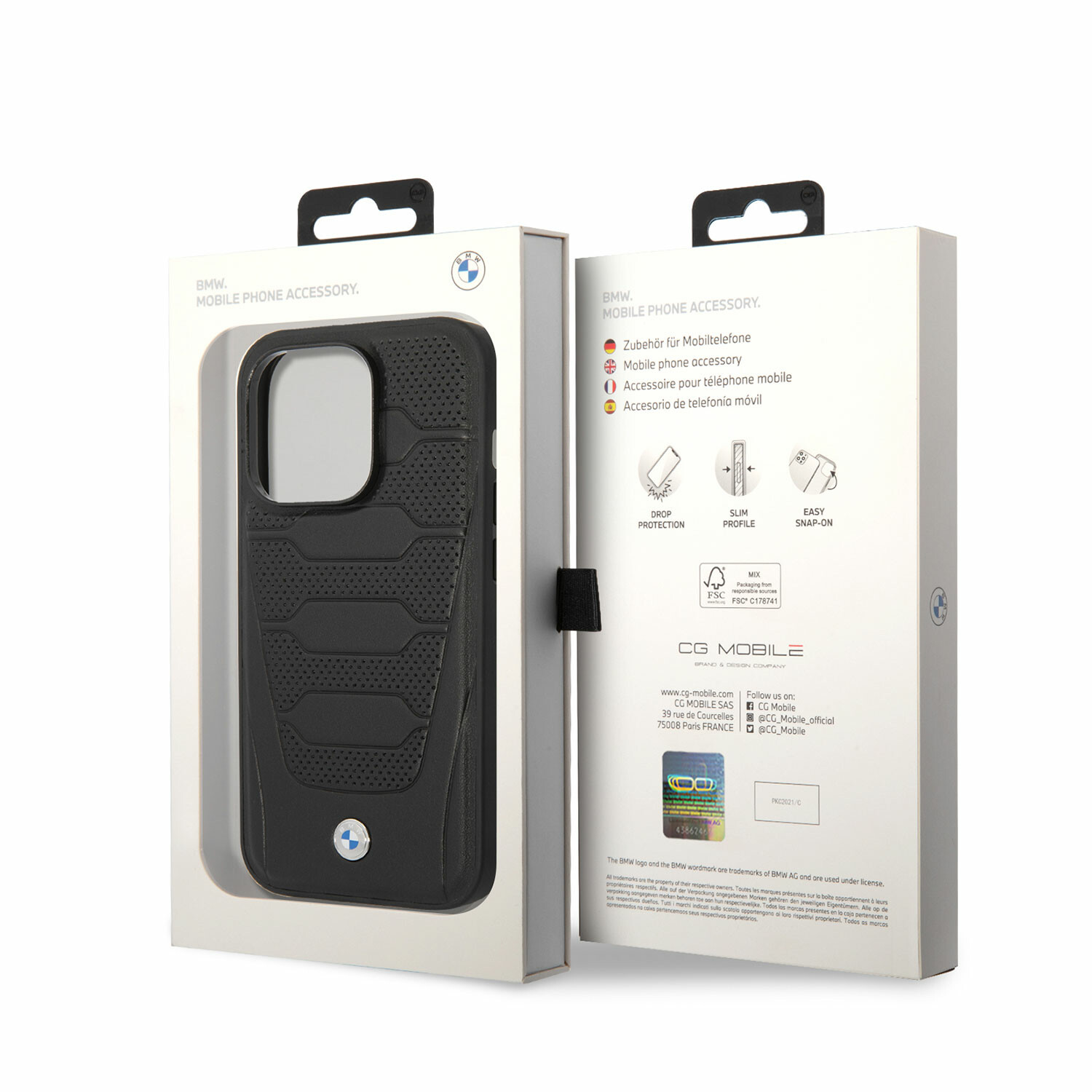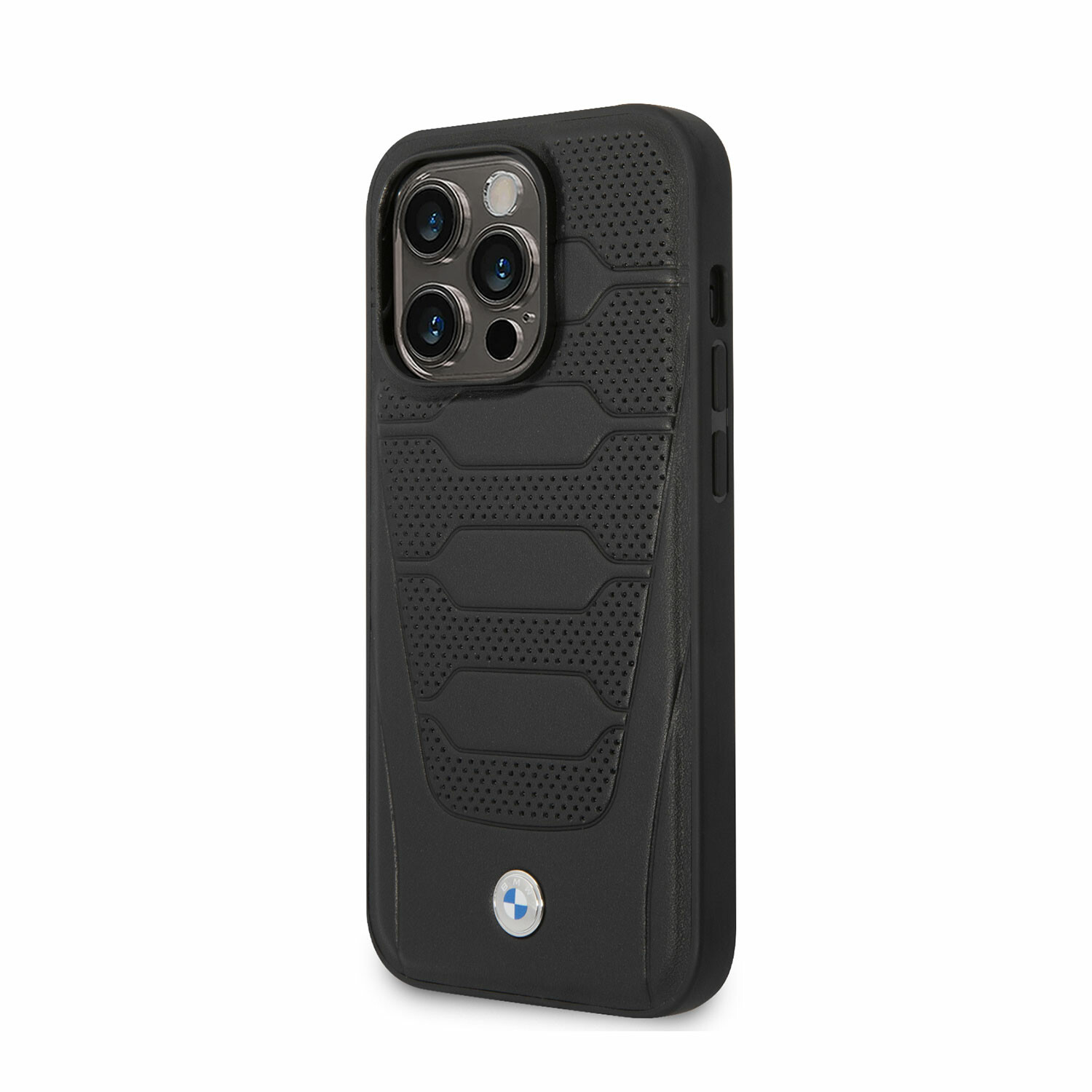 This case features a slim, ergonomic silhouette with a high-quality grip thanks to the soft, supple leather exterior. Directly inspired by both BMW interiors and exteriors, the case is finished with a debossed BMW wordmark, as well as an embossed line and encrusted metal BMW logo accent. Slightly raised edges provide enhanced drop protection and scratch resistance, while precise cutouts allow for easy access to all ports, buttons, and speakers.