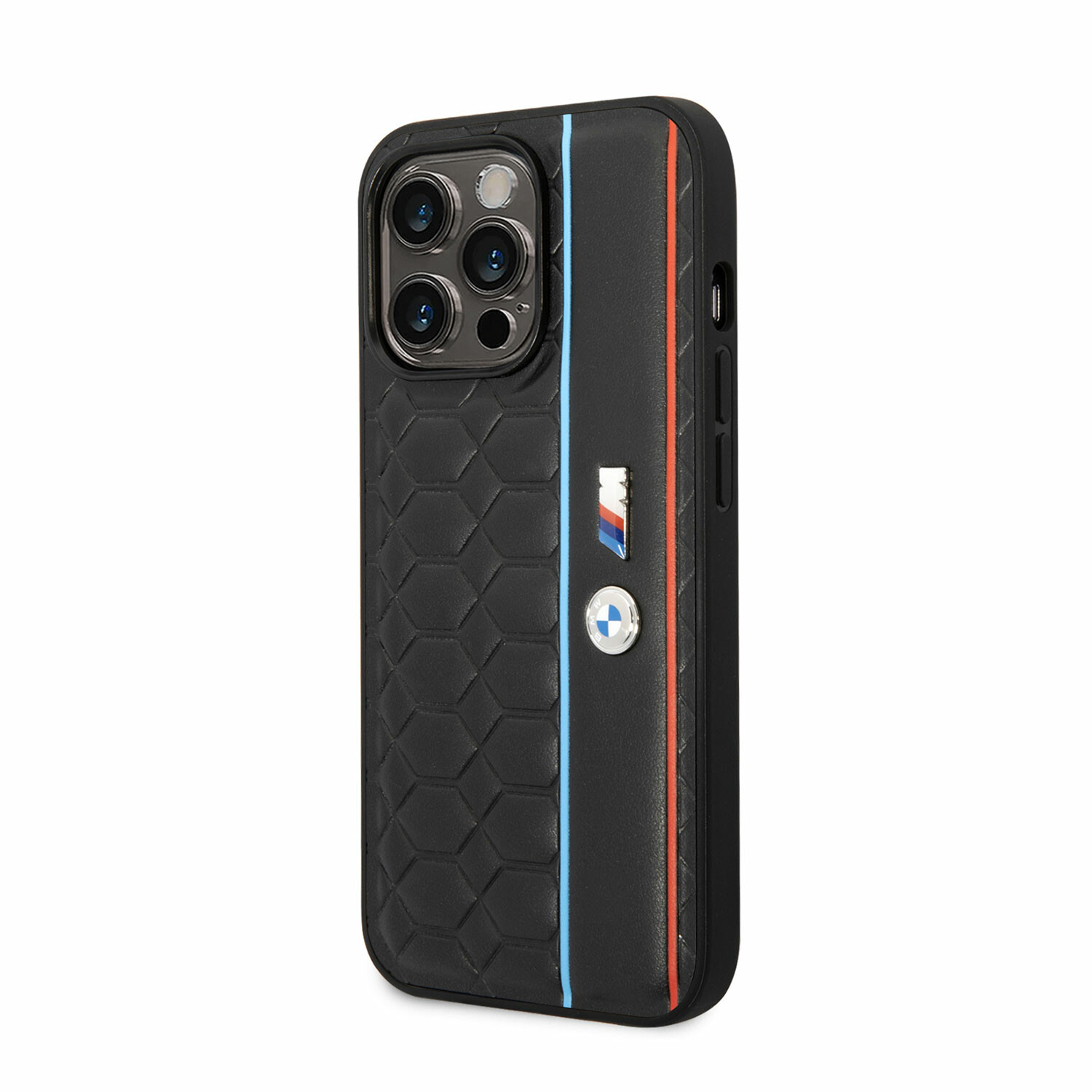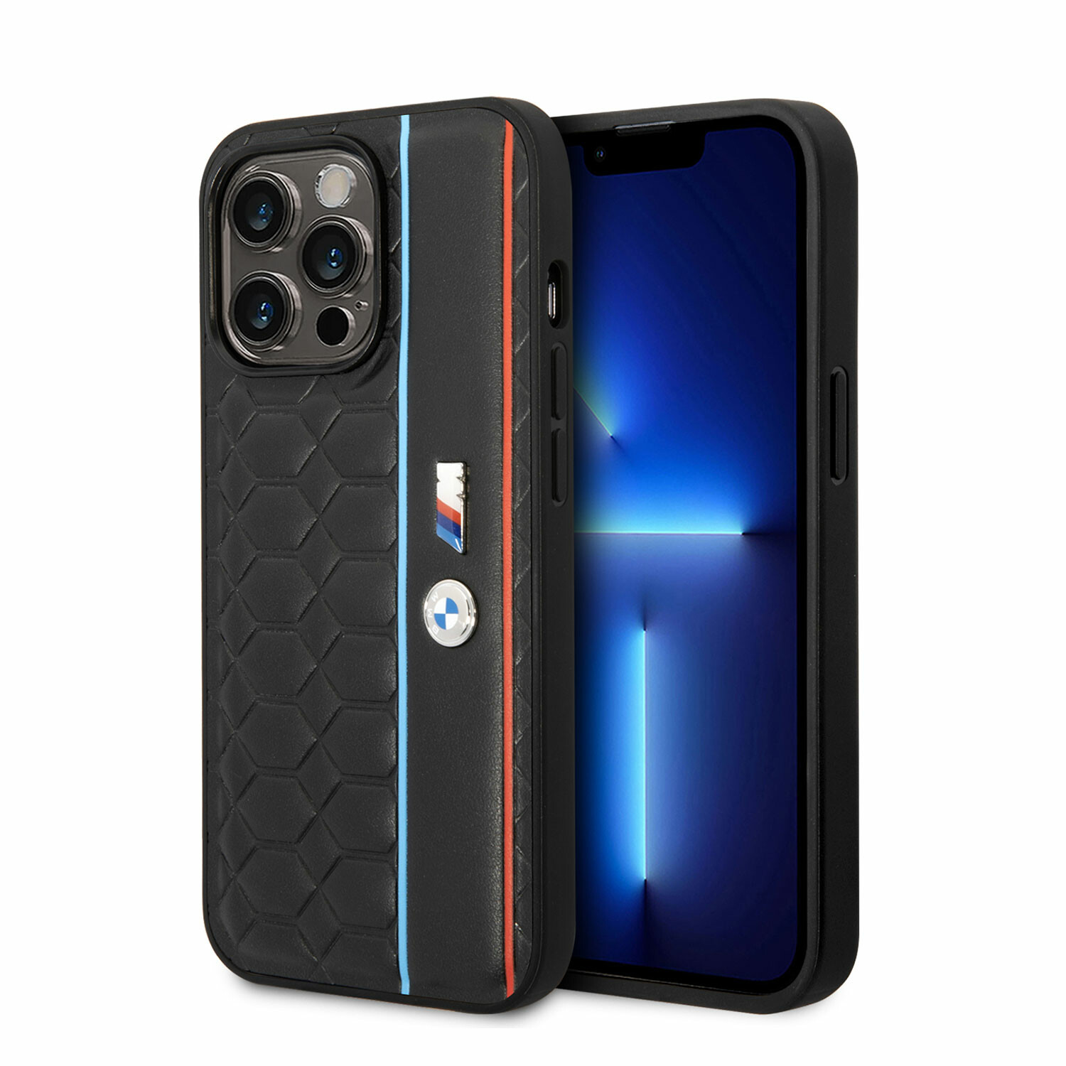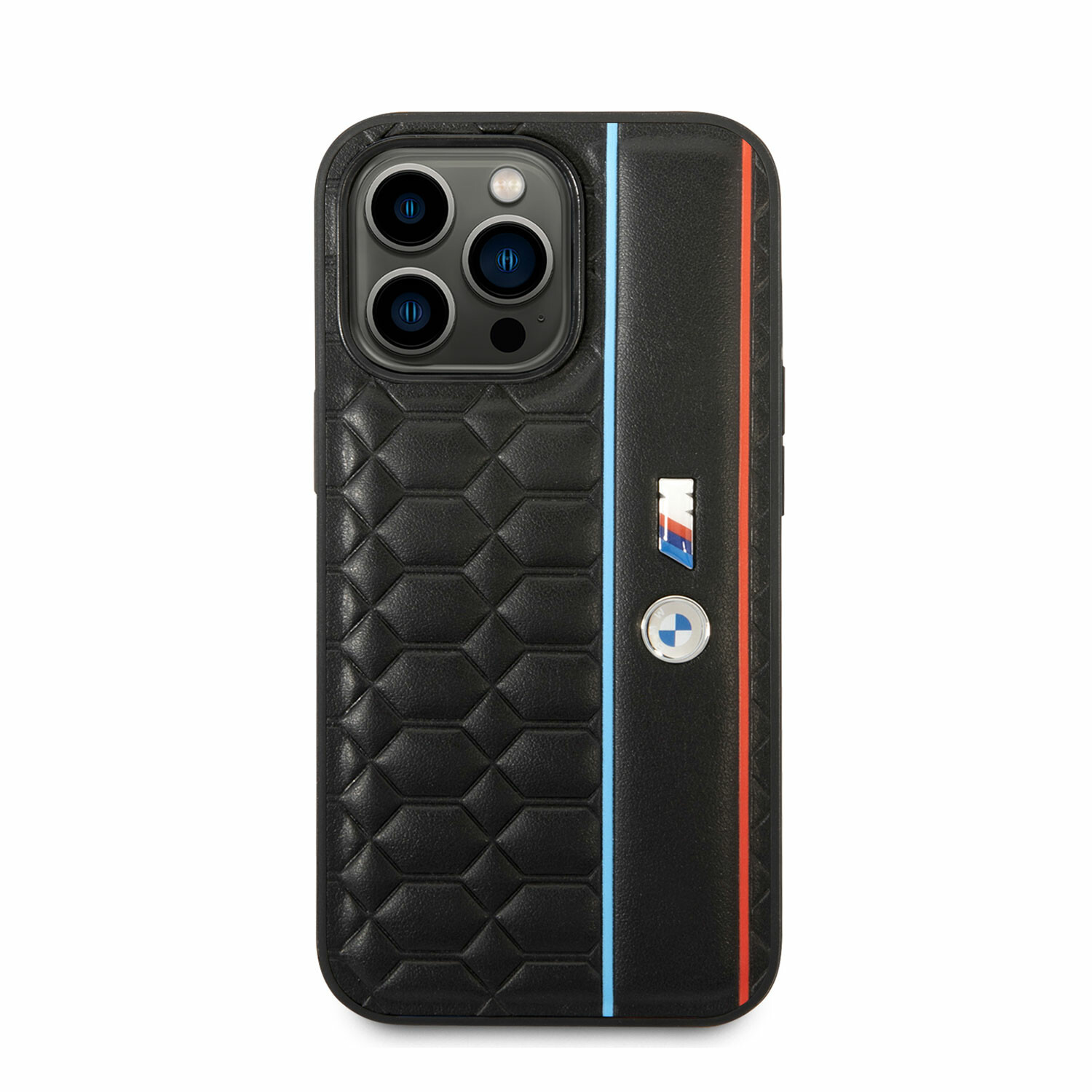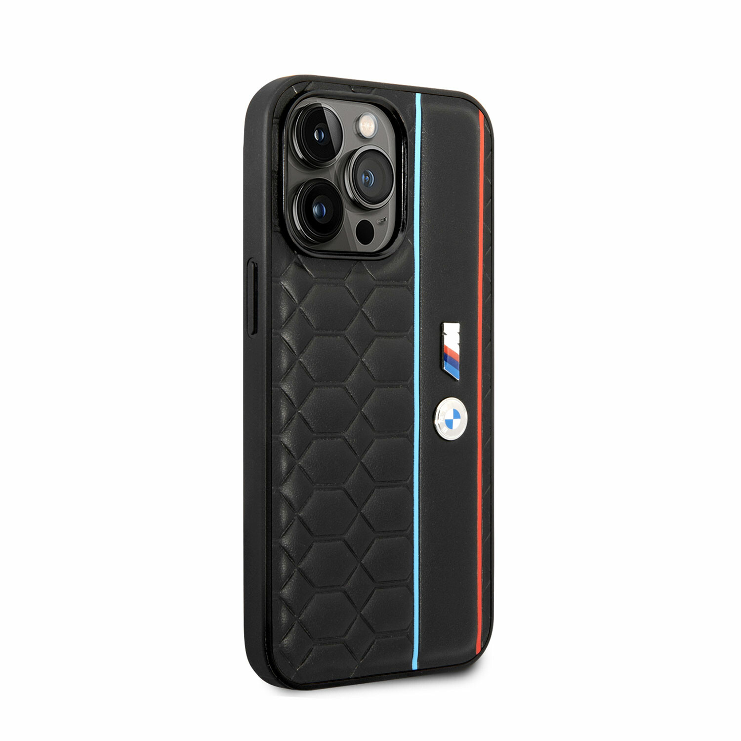 M Collection // Vegan Leather iPhone Case // Hexagonal Pattern + Smooth PU Stripe + Metal Logos